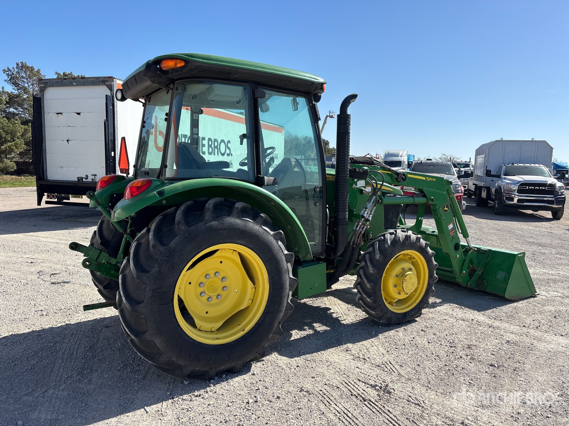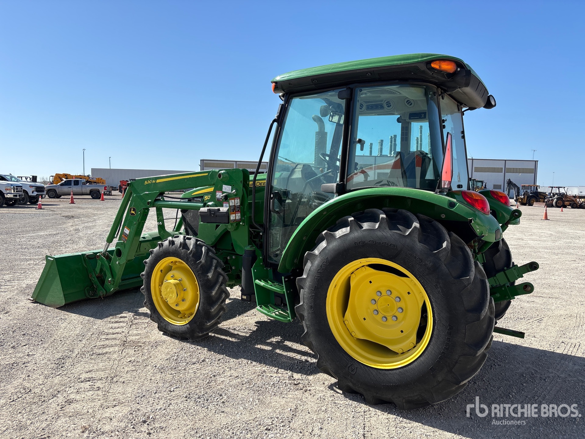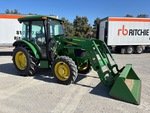 Enclosed Cab, Air Conditioner, Differential Lock, Manual, 2019 US EPA Label, John Deere 520M Loader w/Joystick, Quick Coupler, John Deere 75 in Bucket, 1 Rear Remotes, 540 PTO, 3-Point Hitch, Drawbar, 9.5-24 Front Tires, 16.9-28 Rear Tires