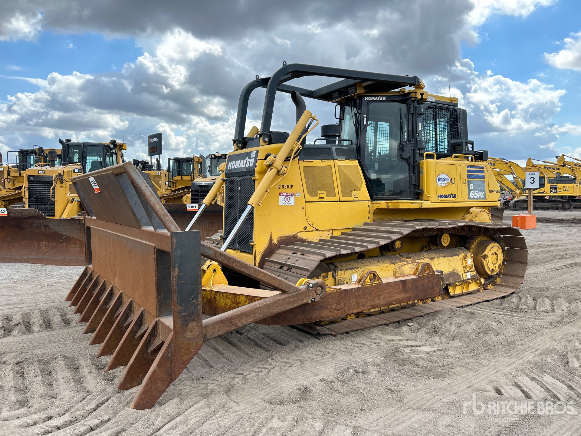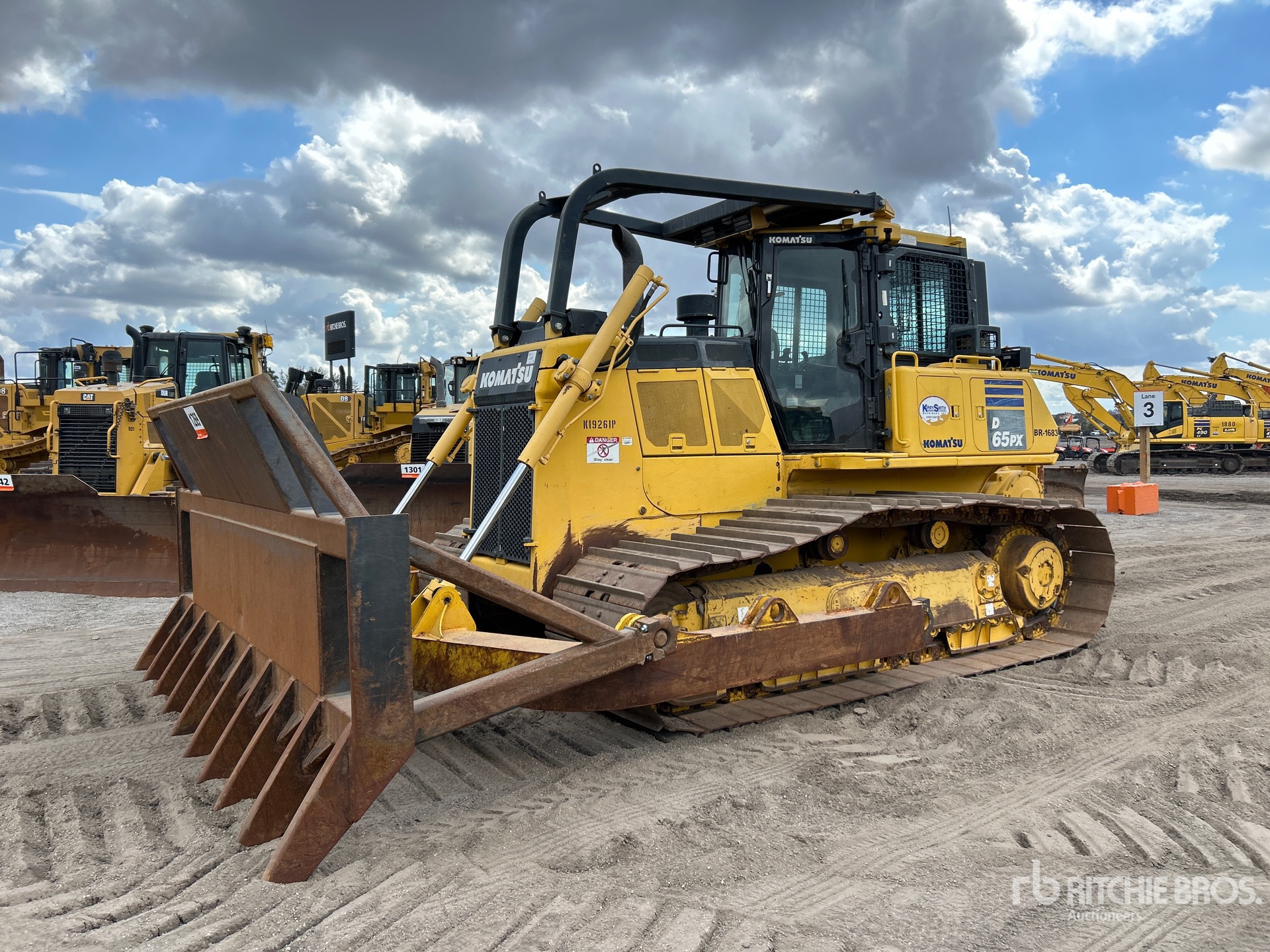 Located in Lane 4 Spot 204, Enclosed Cab, Air Conditioner, Rear View Camera, 2018 US EPA Label, Requires Diesel Exhaust Fluid, Sweeps, 156 in Wide Root Rake, 36 in Single Grouser Track Shoes, PLUS Undercarriage, Carco H85-178V KOM D65-17/18 Winch