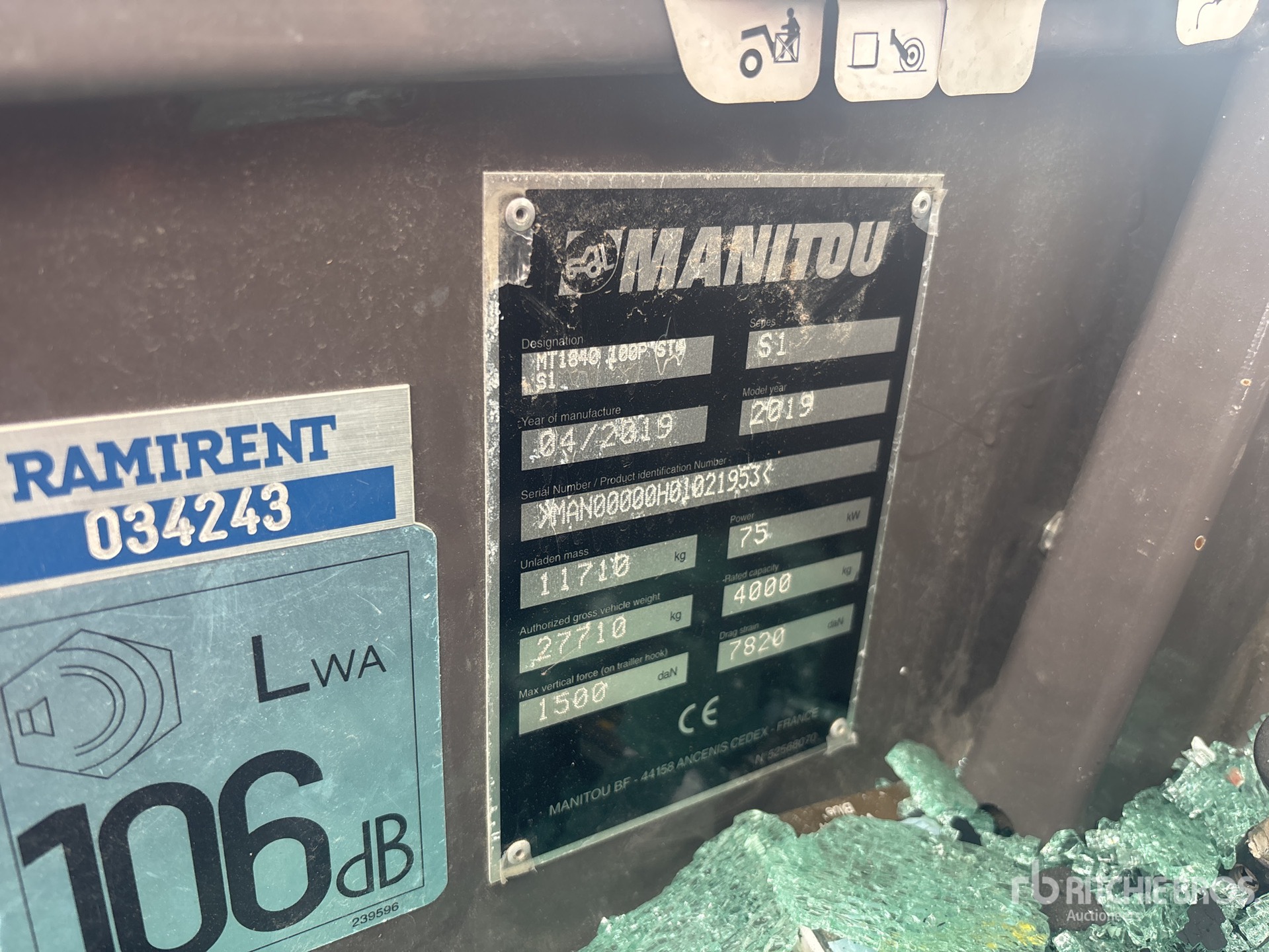 Enclosed Cab, Ride Control, Load Moment Indicator, 18 m Max Lift Height, 4000 kg Max Lift Capacity, 1100 mm Forks, 440/80-24 Tires