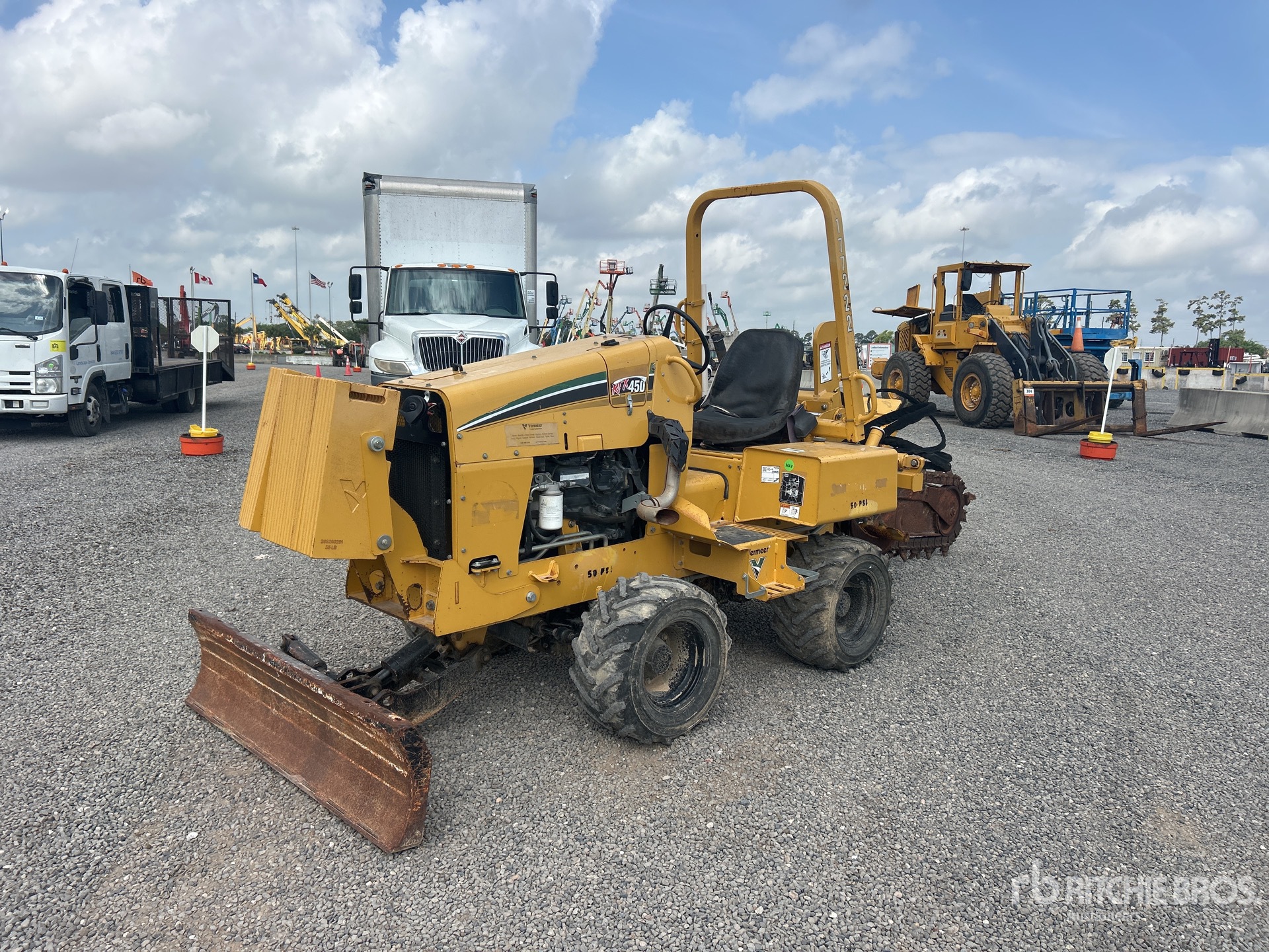 4 Cylinder Diesel Engine, Hydrostatic Drive, 5 in Wide x 6 ft 10 in Long Dirt Trencher Chain, Angle Blade, Side Shift