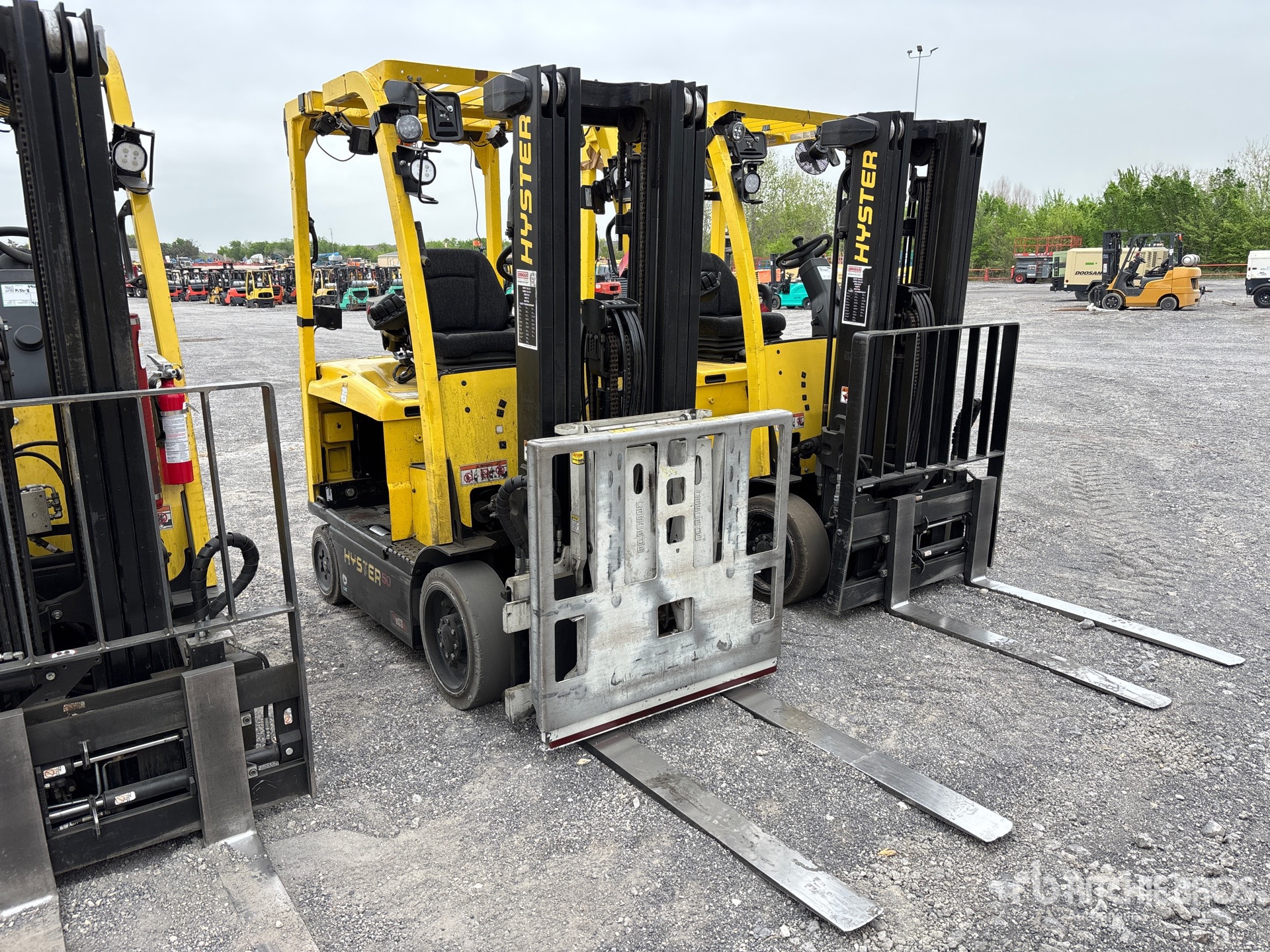 3 Stage Mast, Full Free Lift, 194 in Max Lift Height, 83 in Lowered Mast Height, 42 in Forks, Side Shift, Push/Pull Attachment, 48 V