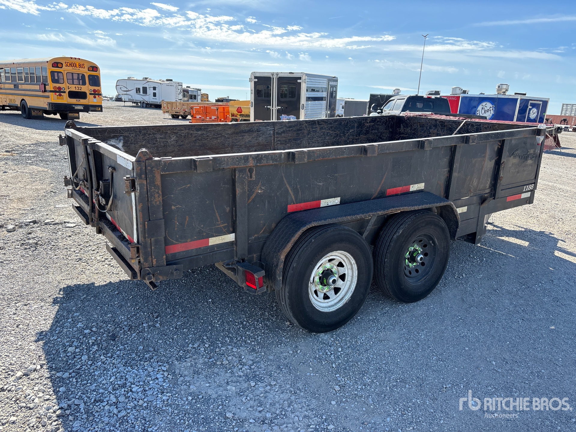 Lunette Ring Hitch, Spring Suspension, 14 ft Body, 24 in Side Walls, Steel Body, Manual Roll Tarp, Split Swing Tailgate, 235/80R16 Tires, 12000 lb GVWR
