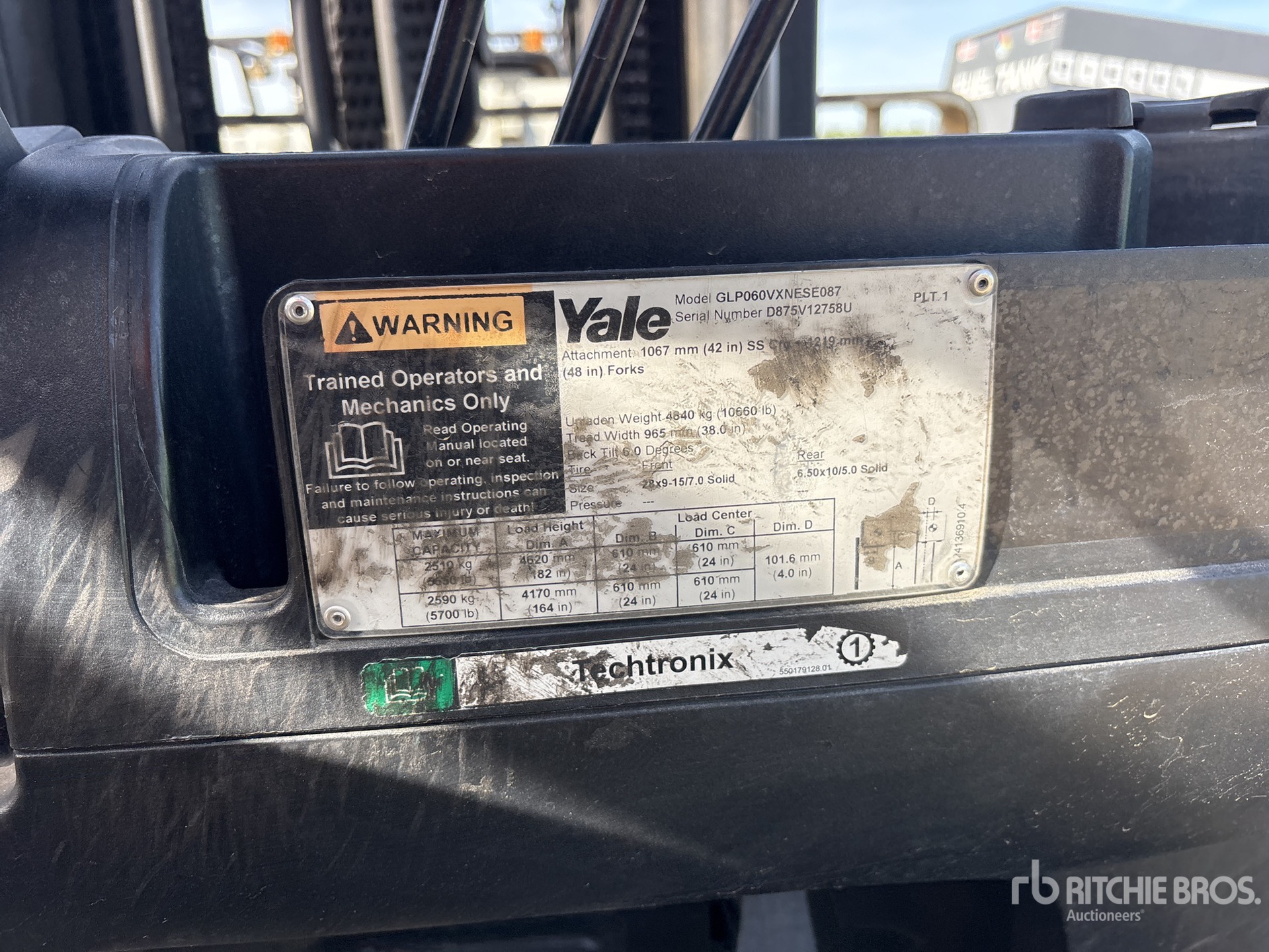 The detailed equipment information is limited in scope, and Ritchie Bros. Auctioneers has not inspected any aspects or components of the equipment other than those expressly set forth herein. Unless expressly stated, we make no representations or warranties, express or implied, concerning the equipment or its components, including without limitation any representations or warranties concerning functionality, conformity or compliance with any safety standard or requirement of any applicable authority or regulatory body, fitness for any particular purpose, or merchantability. You are strongly advised to perform your own detailed inspection of the equipment prior to bidding.