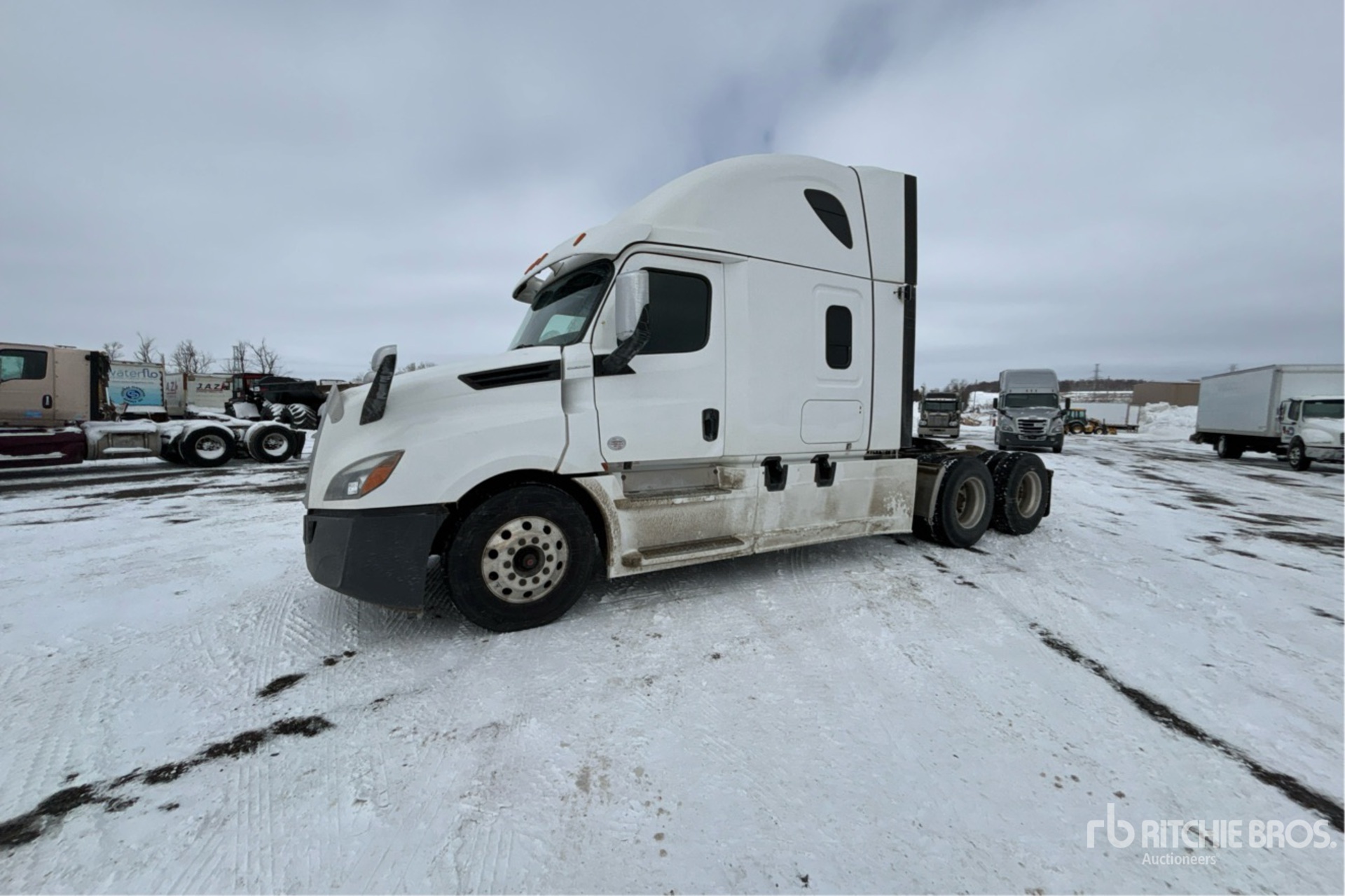 Detroit DD15 505 hp Engine, 2020 US EPA Label, 10607 Engine hrs, Detroit DT12-1650-OH1 12-Speed Automated Transmission, 12000 lb Front Axle, 40000 lb Rears, 52000 lb GVWR, Engine Brake, Differential Lock, 70 in High Rise Sleeper Cab, Bunk Beds, 225 in Wheelbase, Air Suspension, Aluminum Wheels, 11R22.5, Air Sliding 5th Wheel, Dual Fuel Tanks