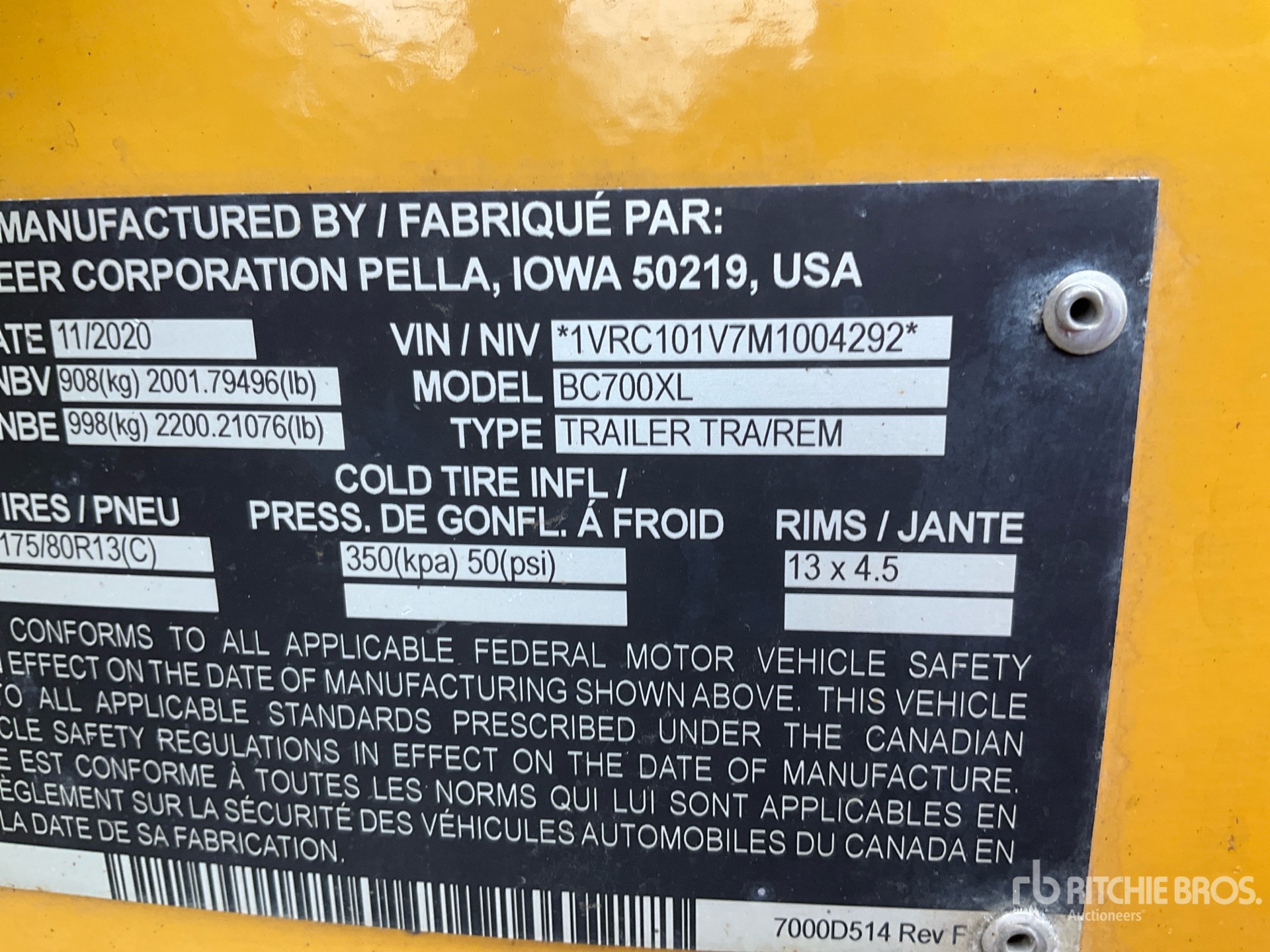 The detailed equipment information is limited in scope, and Ritchie Bros. Auctioneers has not inspected any aspects or components of the equipment other than those expressly set forth herein. Unless expressly stated, we make no representations or warranties, express or implied, concerning the equipment or its components, including without limitation any representations or warranties concerning functionality, conformity or compliance with any safety standard or requirement of any applicable authority or regulatory body, fitness for any particular purpose, or merchantability. You are strongly advised to perform your own detailed inspection of the equipment prior to bidding.