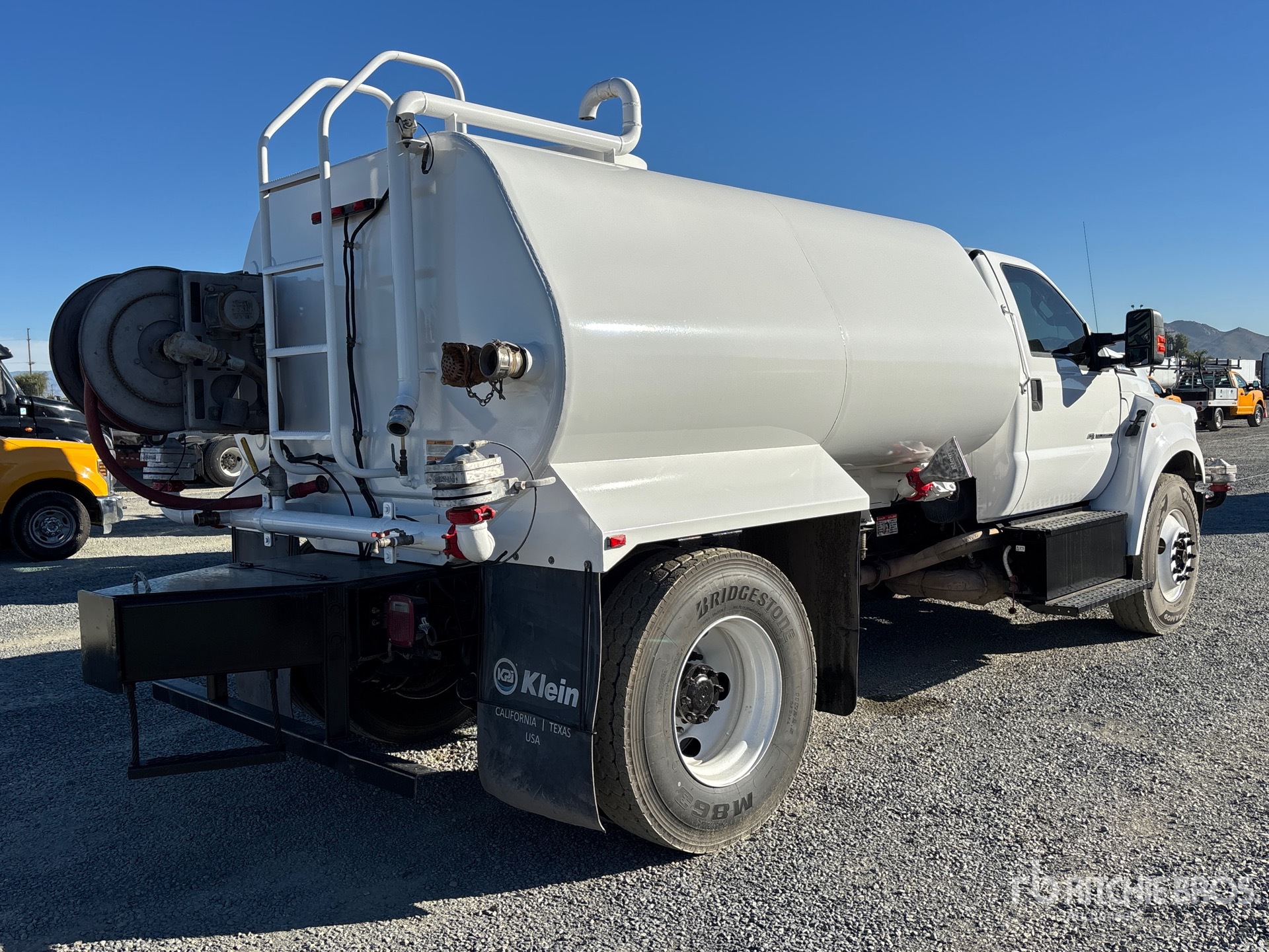 Ford V8 6.7 L Diesel Engine, 2021 US EPA Label, Requires Diesel Exhaust Fluid, Exhaust Brake, Automatic Transmission, 12000 lb Front Axle, 21000 lb Rears, 25999 lb GVWR, 11R22.5 Front Tires, 11R22.5 Rear Tires, Spring Suspension, 178 in Wheelbase, PTO, 2021 Klein K-200 2000 gal Steel Tank, Catwalk, PTO Driven Pump, 84 ft, Spray Bar, Hose Reel, Front Spray, Rear Spray, Side Spray