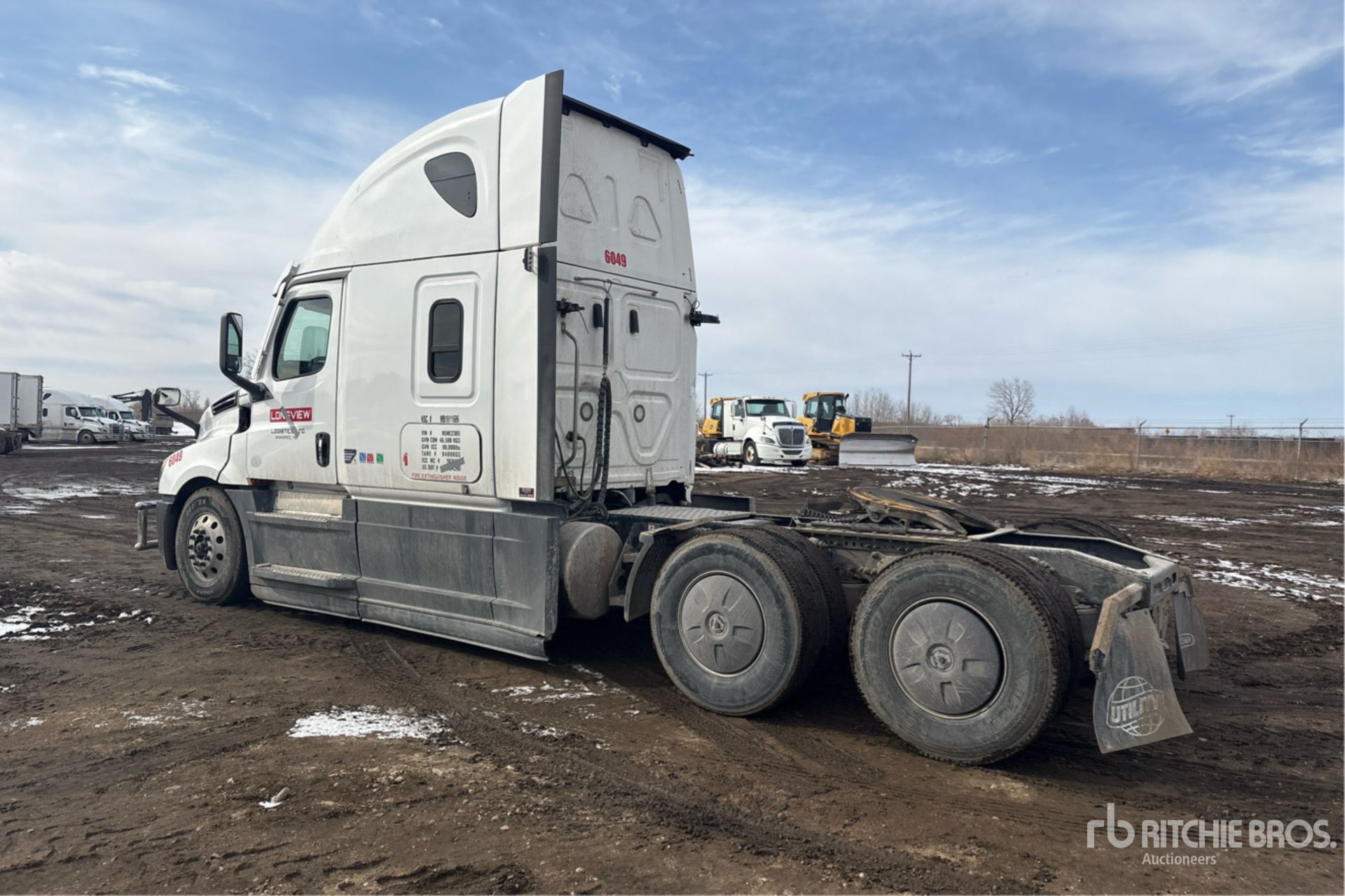 Detroit DD15 505 hp Engine, 18396 Engine hrs, Detroit DT12-1550-OH1 12-Speed Automated Transmission, 13220 lb Front Axle, 40000 lb Rears, 24140 lb GVWR, Engine Brake, Double Differential Locks, 60 in High Rise Sleeper Cab, Bunk Beds, 235 in Wheelbase, Air Suspension, Aluminum Wheels, 11R22.5, Air Sliding 5th Wheel, Dual Fuel Tanks