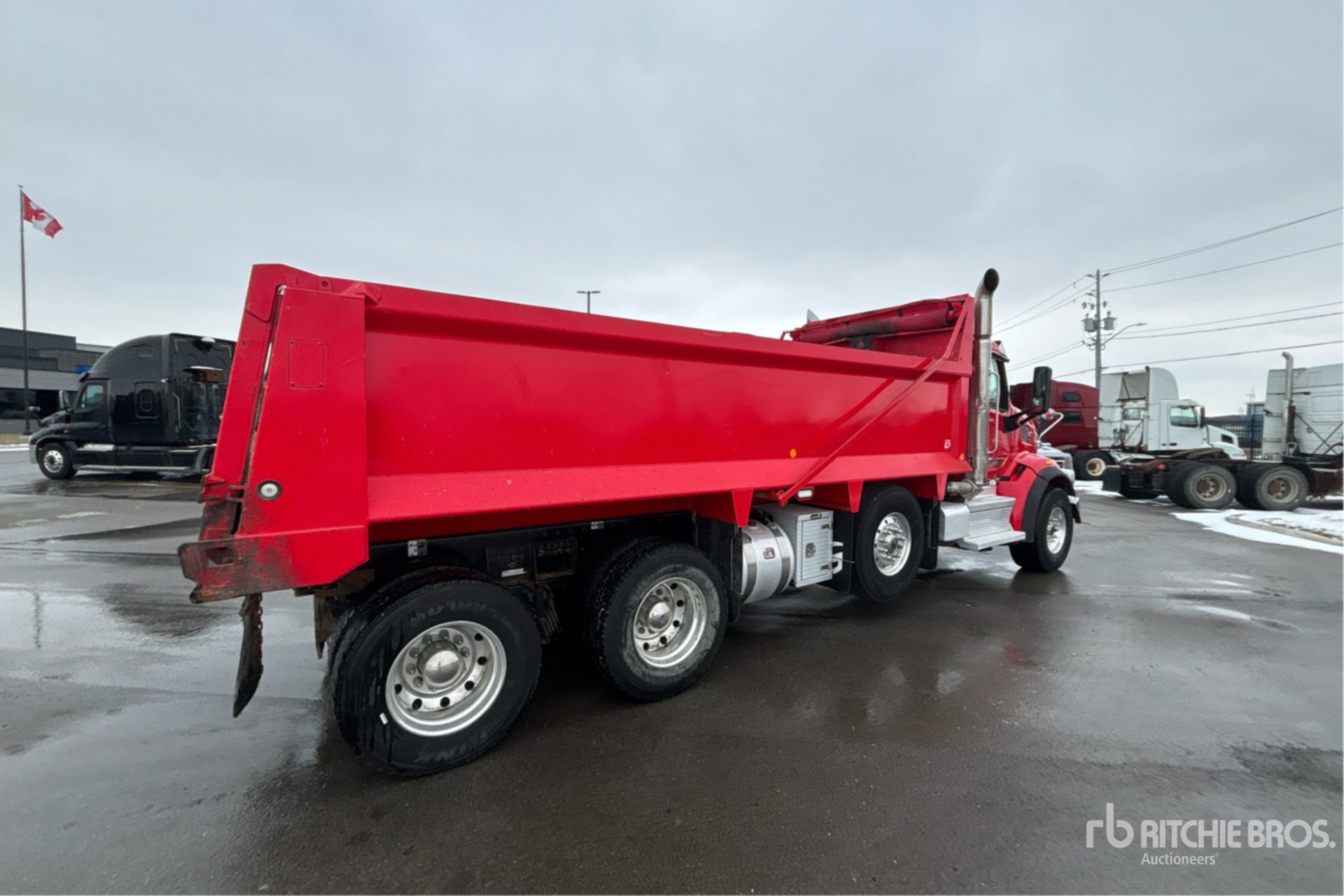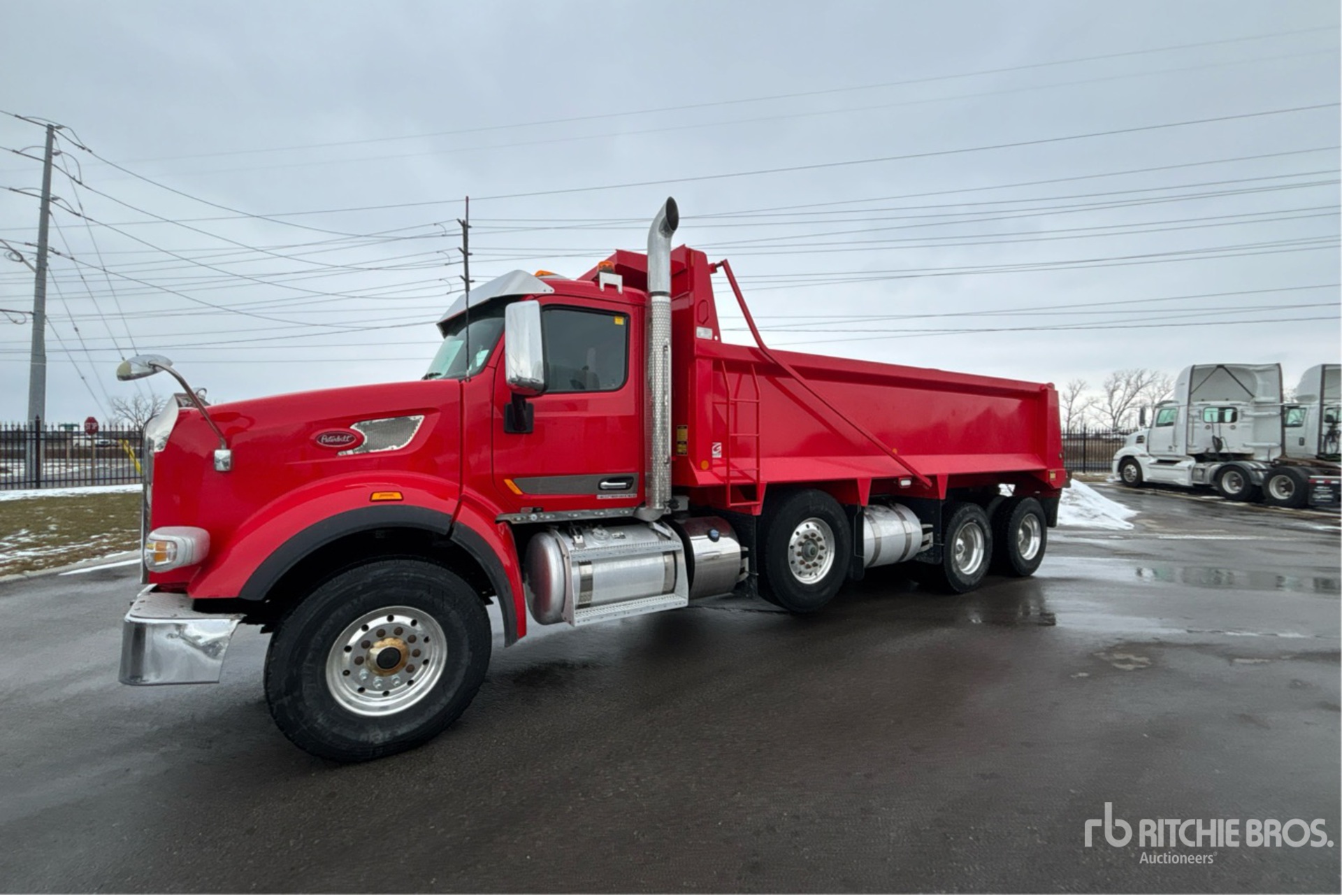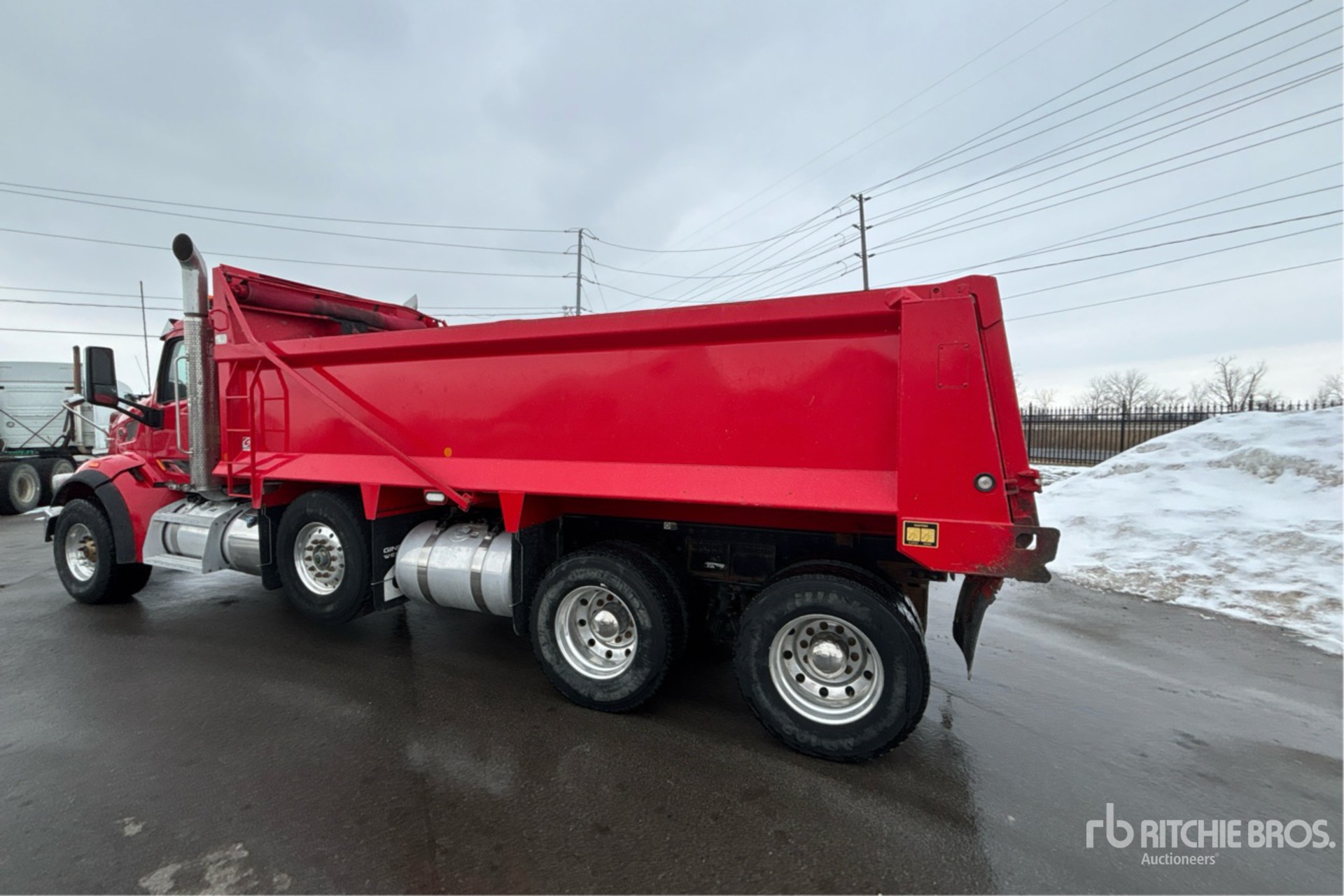 Cummins X15 6 Cylinder 15 L Diesel 525 hp Engine, 2021 US EPA Label, CARB Compliant, Requires Diesel Exhaust Fluid, 4617 Engine hrs, Engine Brake, Automated Transmission, Double Differential Locks, 20000 lb Front Axle, 46000 lb Rears, 86000 lb GVWR, Air Ride Cab, Aluminum Wheels, 425/65R22.5 Front Tires, 11R22.5 Rear Tires, Dual Steering Boxes, Double Frame, Hendrickson Haulmaax Rubber Suspension, 262 in Wheelbase, PTO, Bibeau 20 ft Long x 45 in High Steel Body