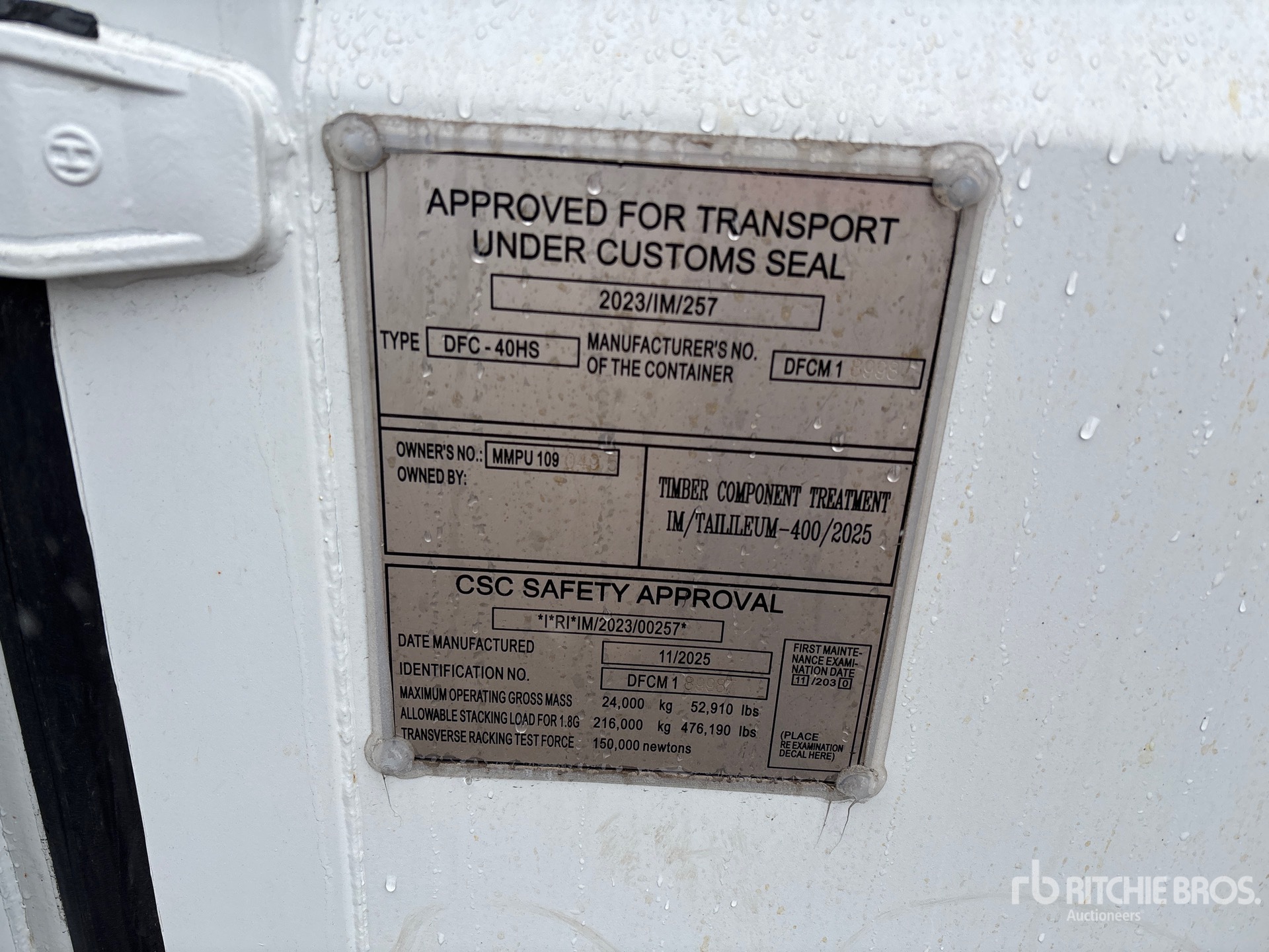 A qualified Ritchie Bros. employee collected detailed equipment information and performed functional tests on the key components of this asset. You, or a proxy, may also inspect any items on site prior to bidding on auction day.