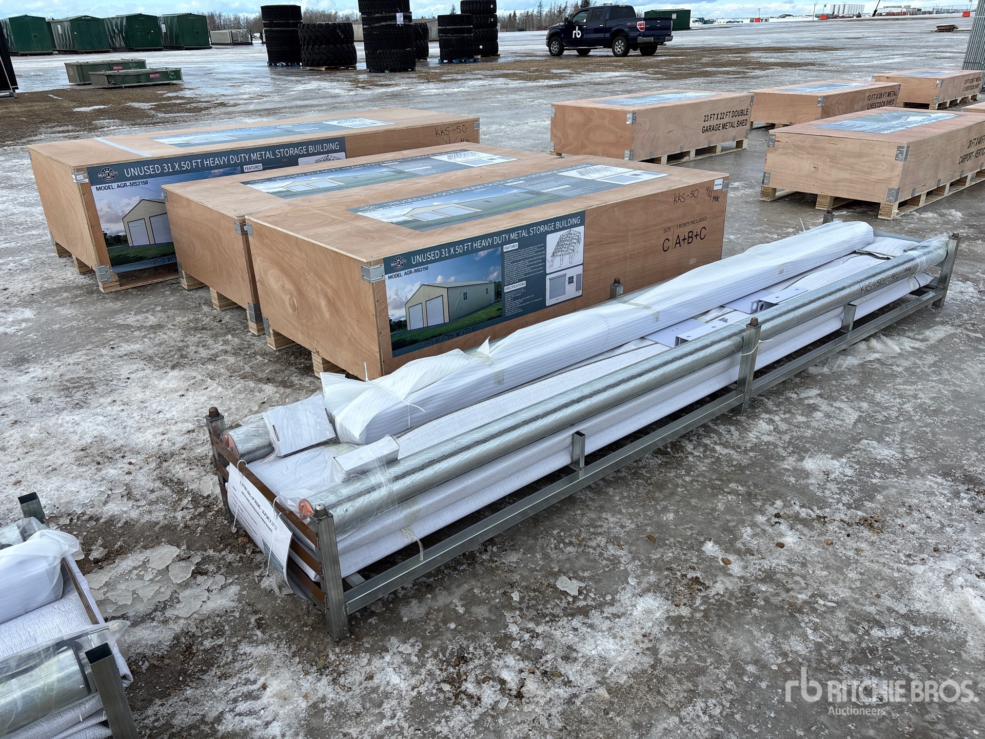 Quantity of (4) Pieces - Builds (1) Storage Building, w/ (2) Electric Roll-up Doors