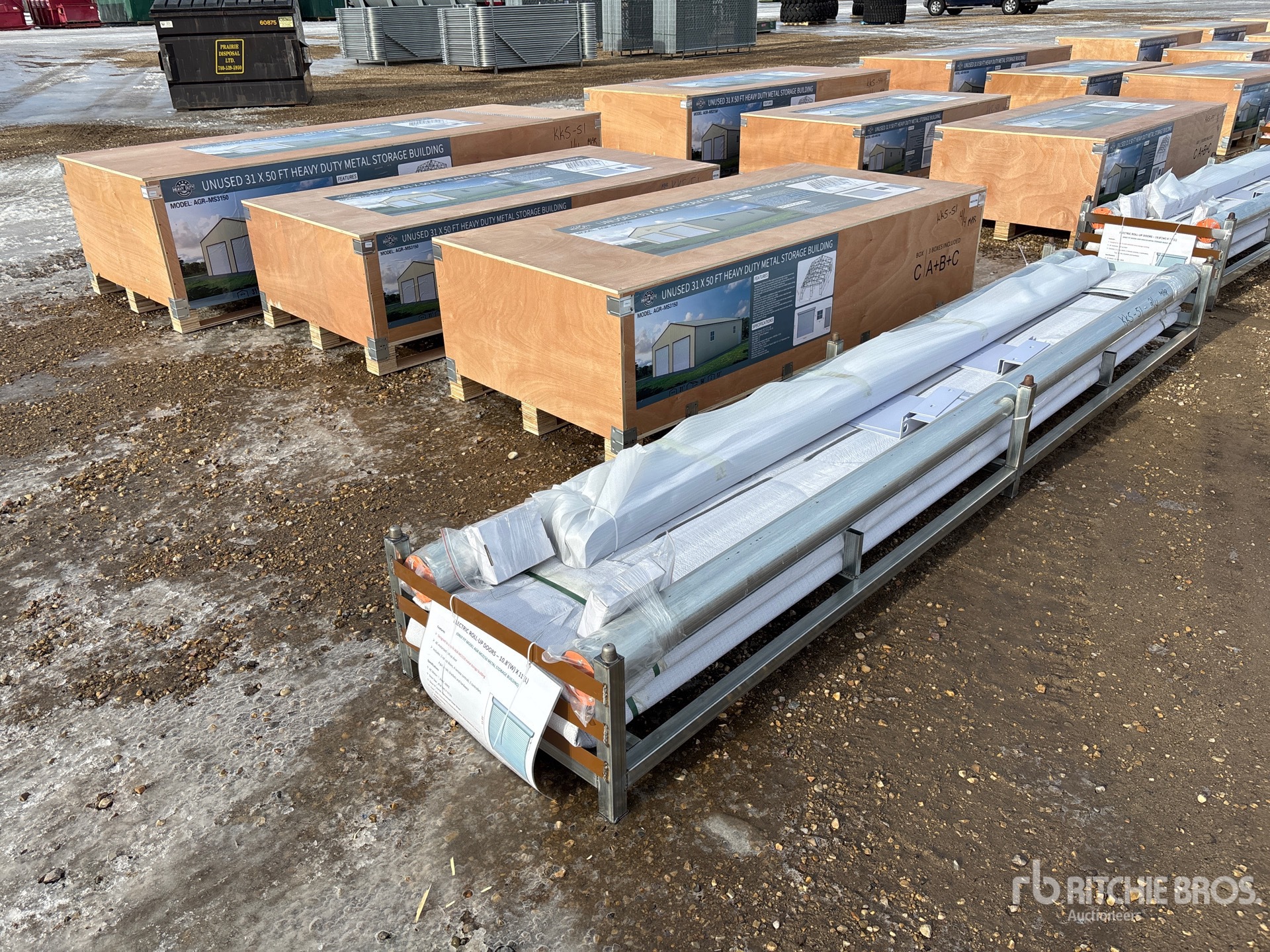 Quantity of (4) Pieces - Builds (1) Storage Building, w/ (2) Electric Roll-up Doors