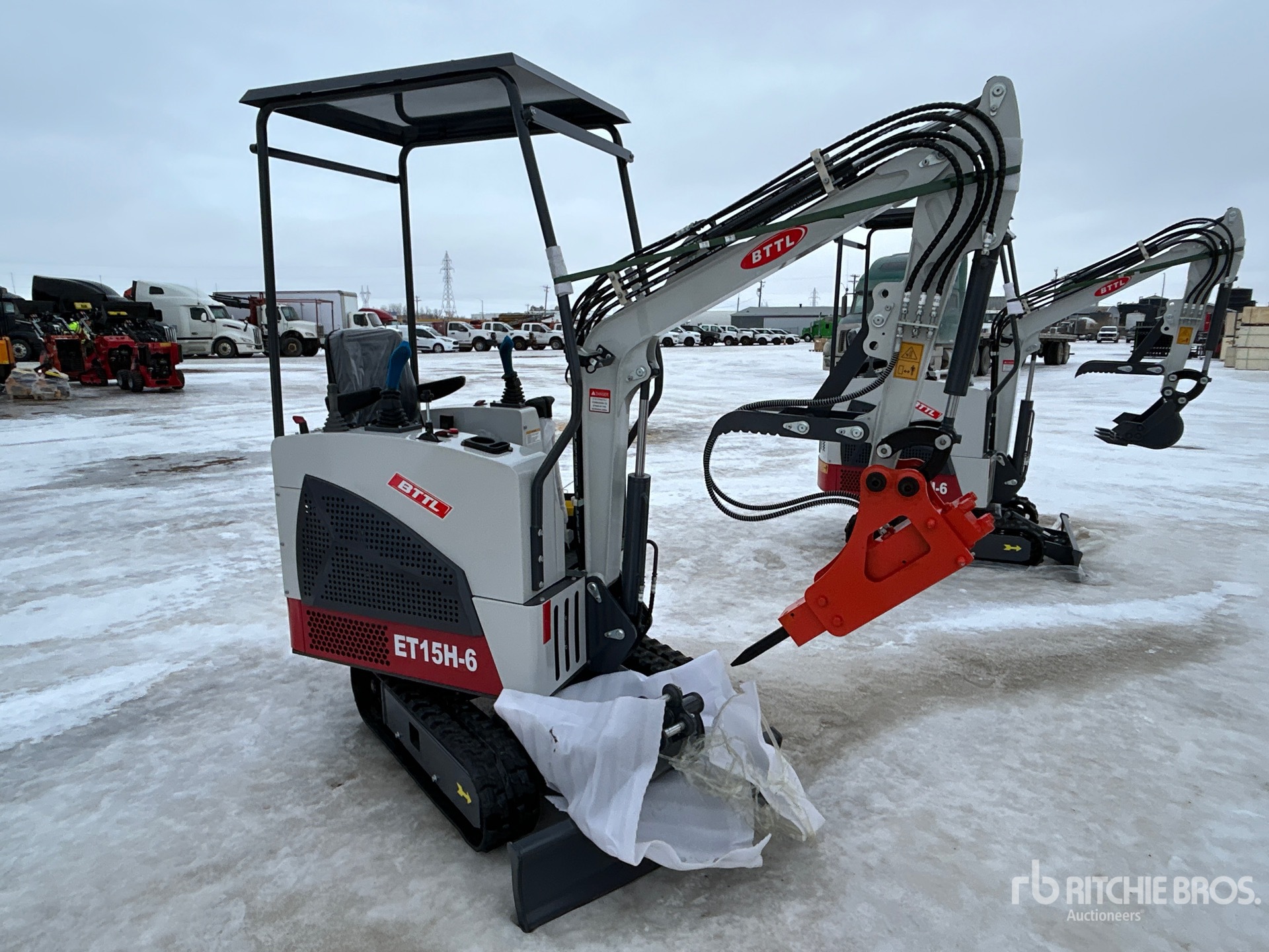 2 ft 9 in Stick, Auxiliary Hydraulic Plumbing, Backfill Blade, 7 in Rubber Tracks, 16 in Digging Bucket, Manual Thumb