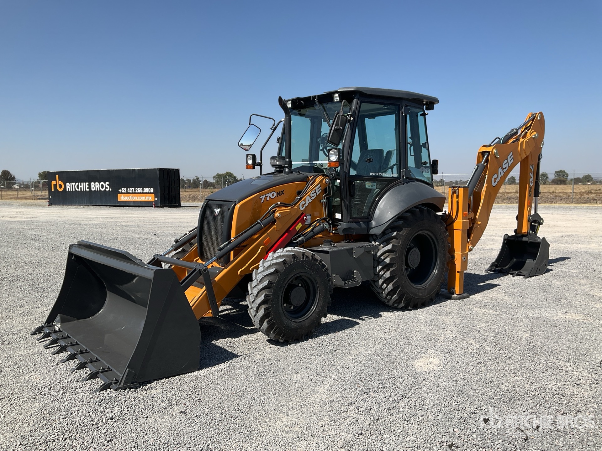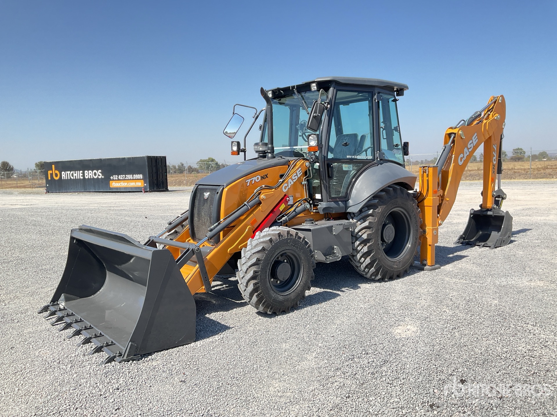 Enclosed Cab, 88 in Loader Bucket, Side Shift, 29 in Backhoe Digging Bucket, DPF System / Cabina, Cucharon Cargador 88 in, Desplazamiento Lateral, Cucharon Retroexcavador 29 in, Sistema de Regeneracion DPF