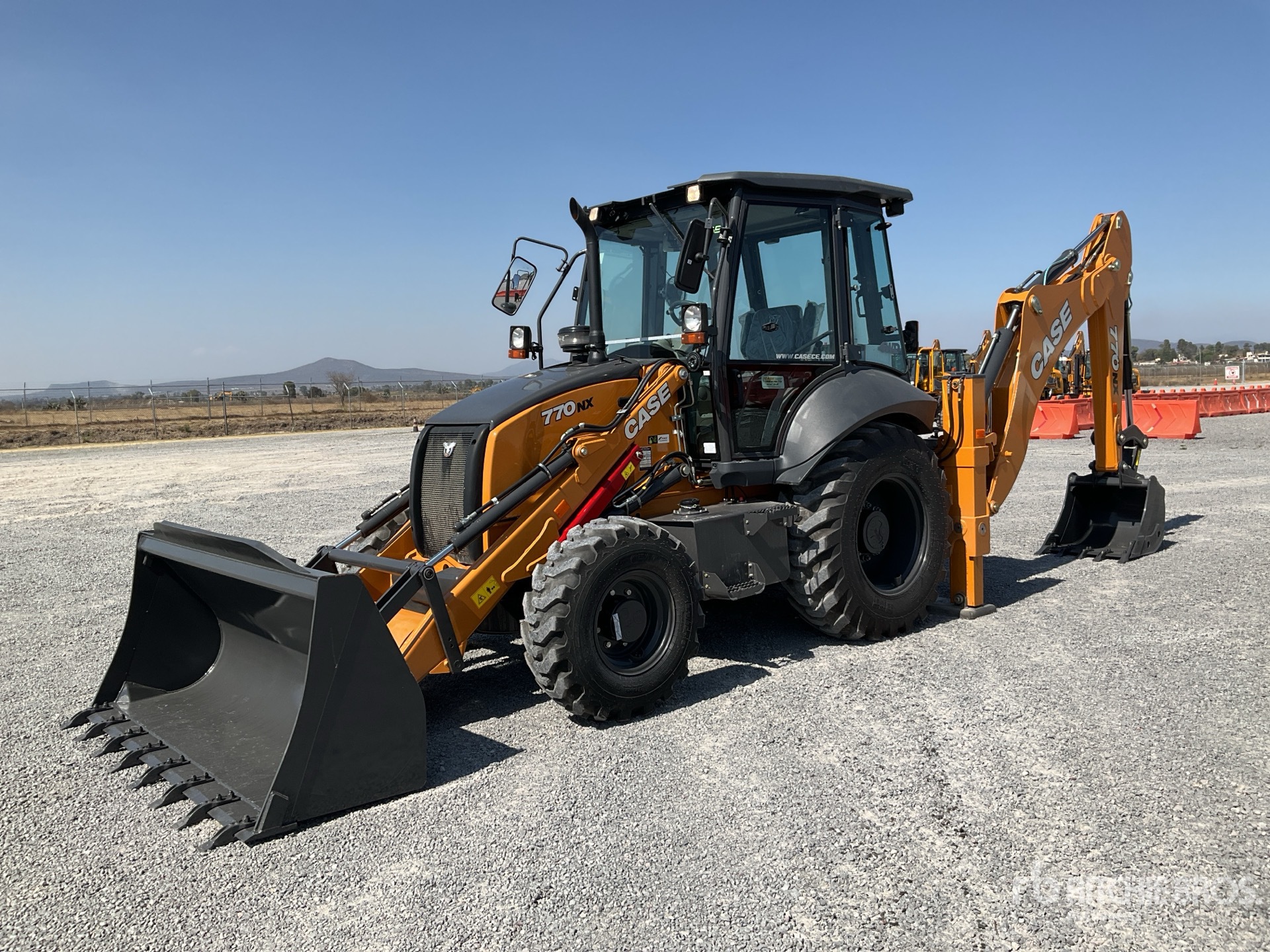 Enclosed Cab, 88 in Loader Bucket, Side Shift, 29 in Backhoe Digging Bucket, DPF System / Cabina, Cucharon Cargador 88 in, Desplazamiento Lateral, Cucharon Retroexcavador 29 in, Con Sistema de Regeneracion DPF