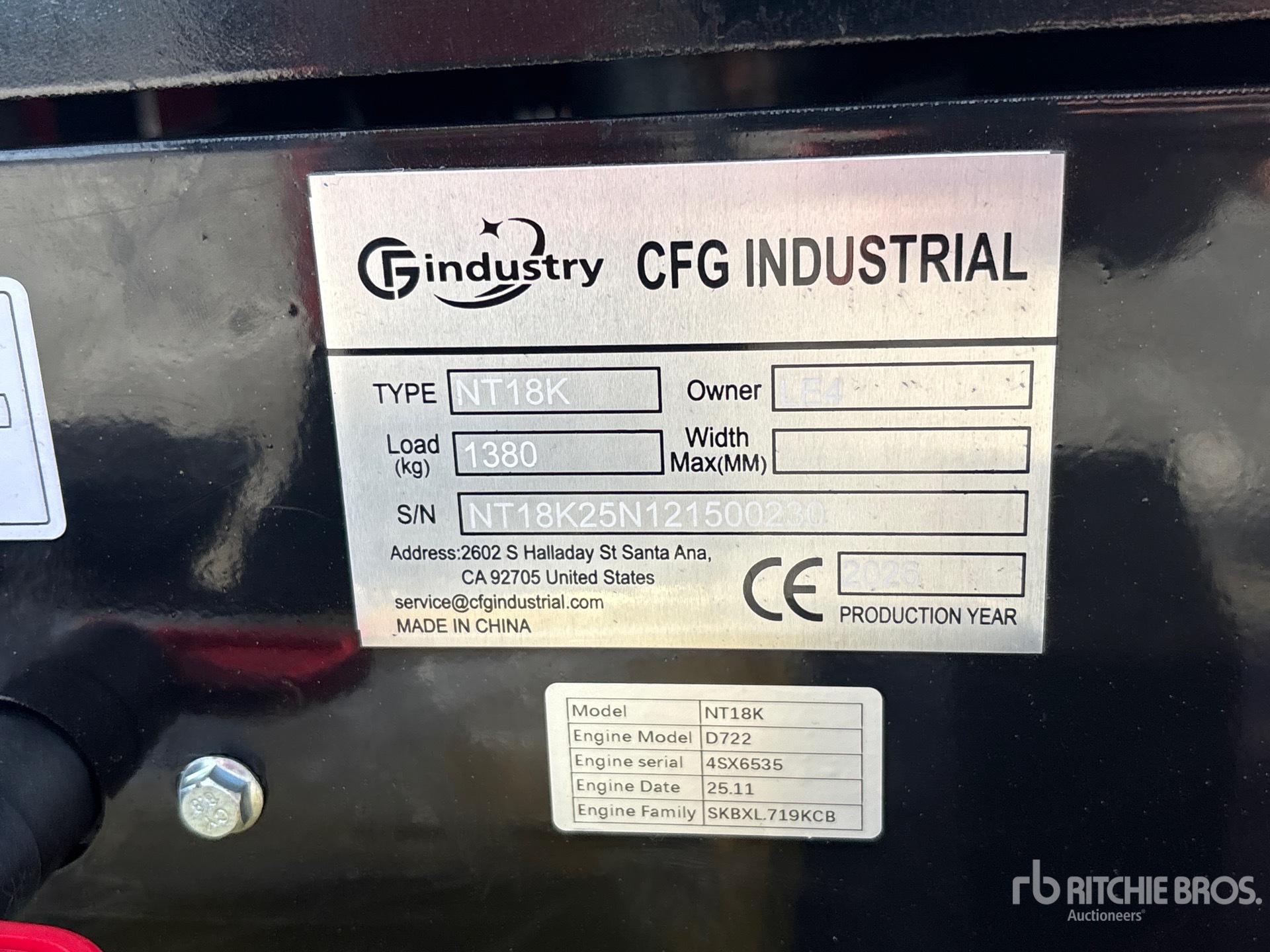 The detailed equipment information is limited in scope, and Ritchie Bros. Auctioneers has not inspected any aspects or components of the equipment other than those expressly set forth herein. Unless expressly stated, we make no representations or warranties, express or implied, concerning the equipment or its components, including without limitation any representations or warranties concerning functionality, conformity or compliance with any safety standard or requirement of any applicable authority or regulatory body, fitness for any particular purpose, or merchantability. You are strongly advised to perform your own detailed inspection of the equipment prior to bidding.