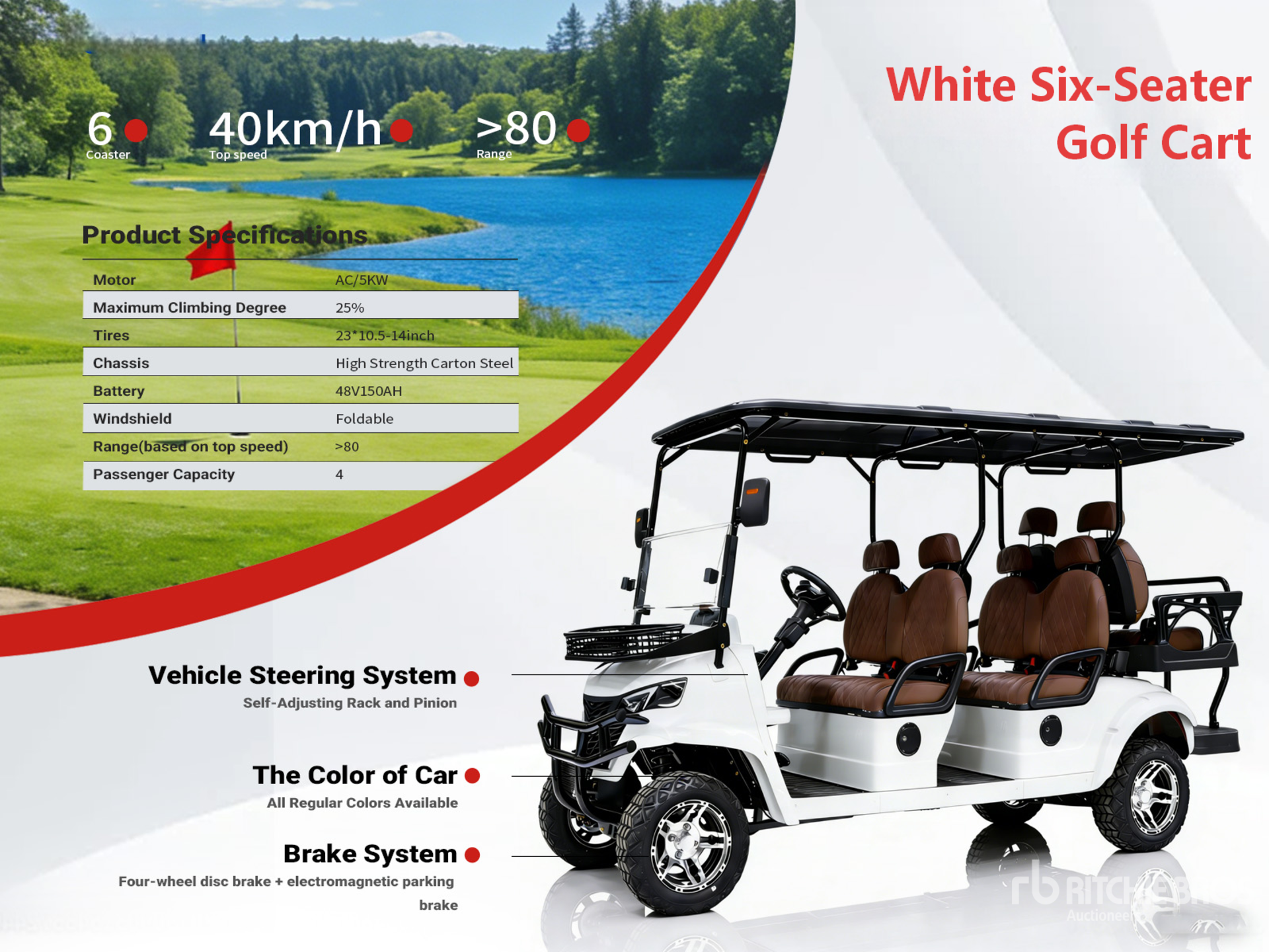 48 Volt 6 Passenger, Canopy, Windshield, For internal area use only, not licensed for road use ; Product images displayed are stock photos. Item is new/unused.