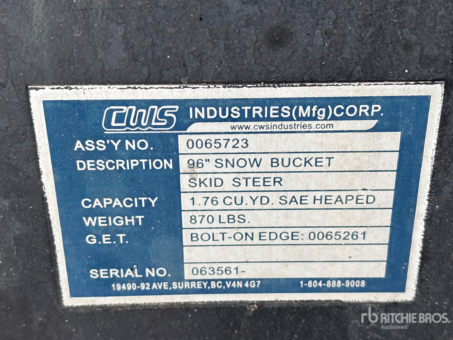 A qualified Ritchie Bros. employee collected detailed equipment information and performed functional tests on the key components of this asset. You, or a proxy, may also inspect any items on site prior to bidding on auction day.