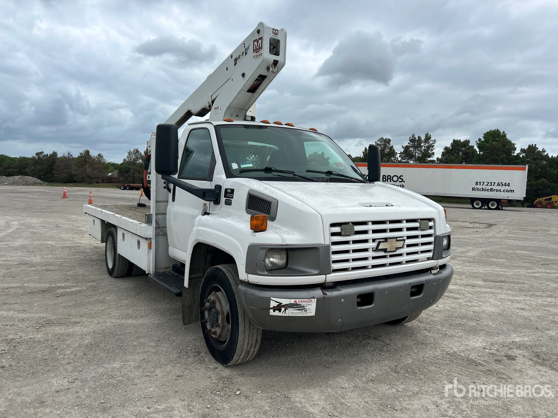 General Motors 6 Cylinder 6.6 L Diesel 330 hp Engine, 2007 US EPA Label, Automatic Transmission, 245/70R19.5, Spring Suspension, 155 in Wheelbase, 350 lb Capacity, Front Mounted, One-Person Articulating-Telescopic Boom, Flatbed, 14 ft x 96 in Bed