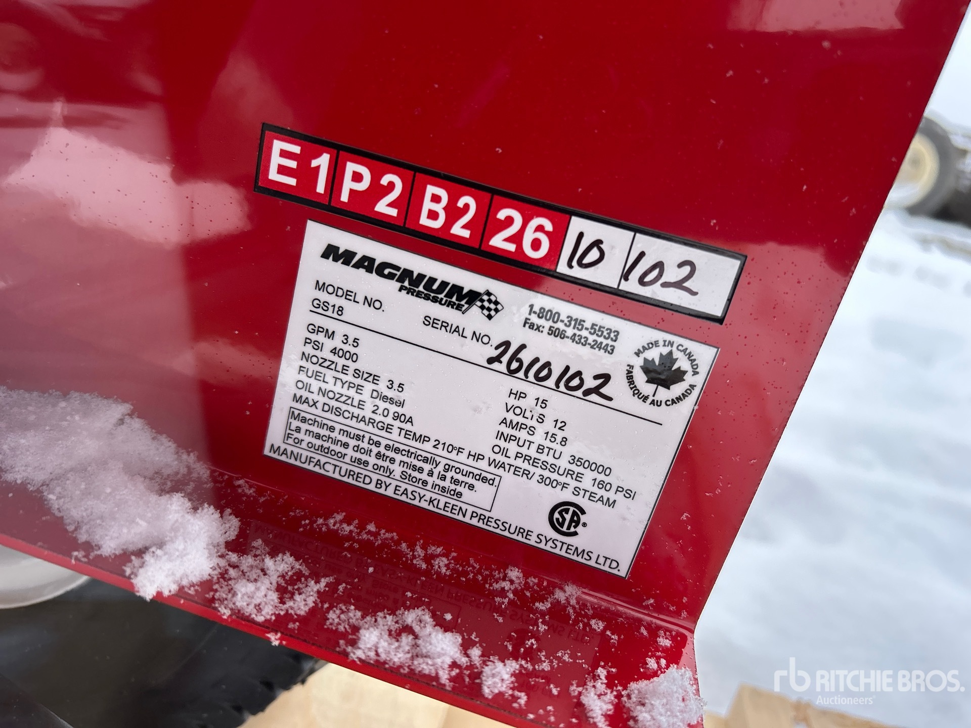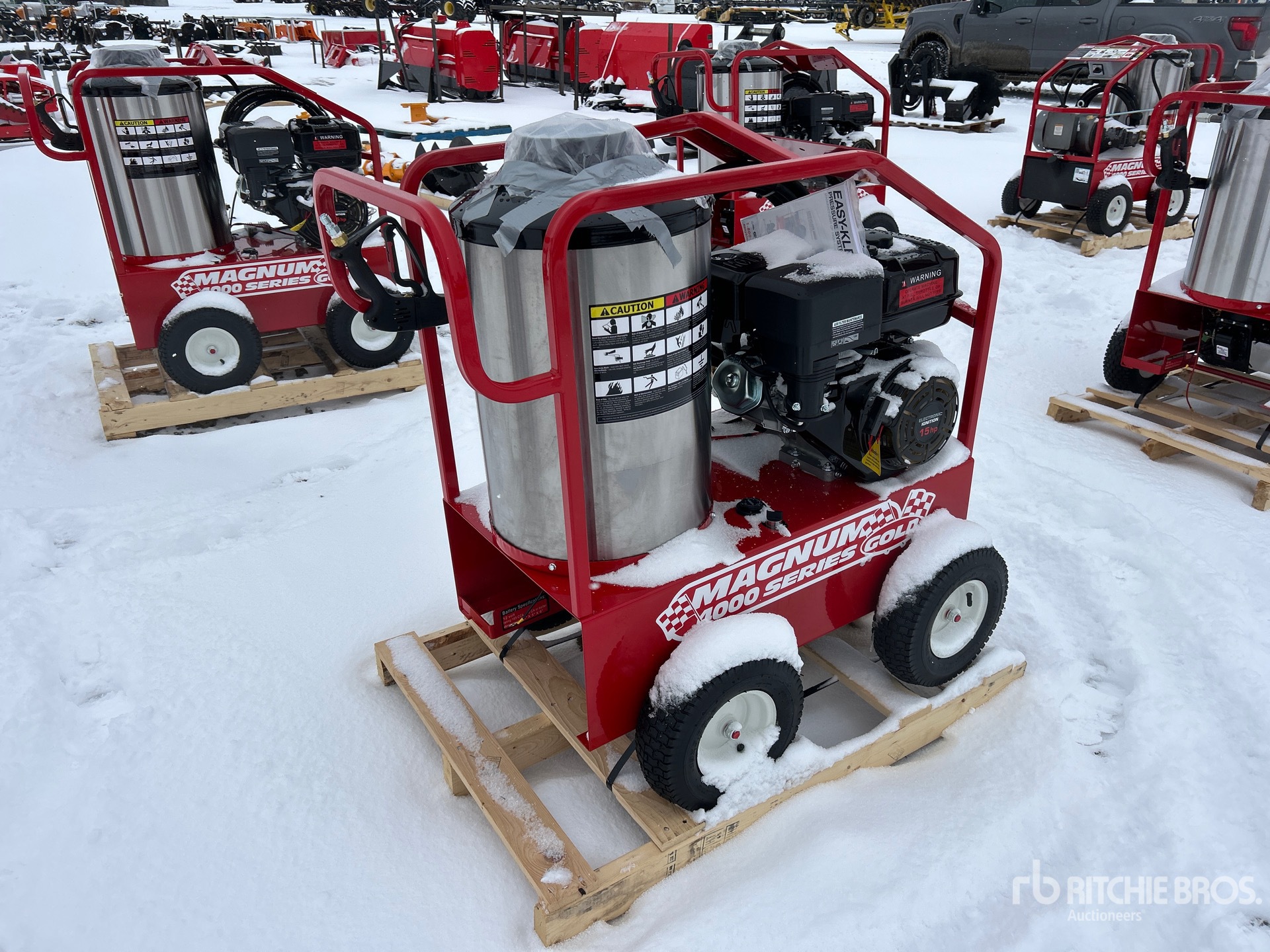 4000 psi Rating, Water Heater, Hose, Spray Wand, 15 hp Gasoline Engine, Product images displayed are stock photos. Item is new/unused.