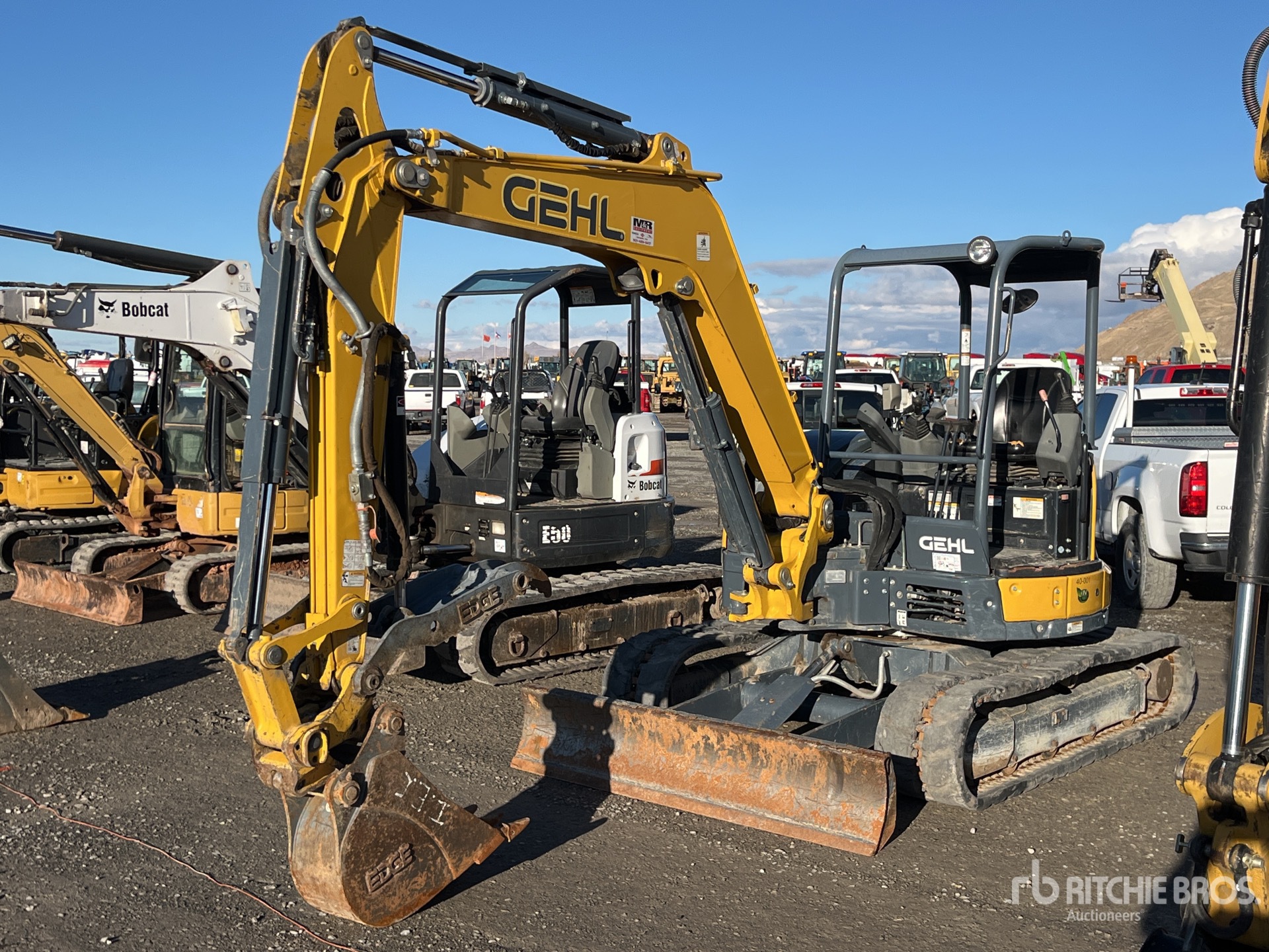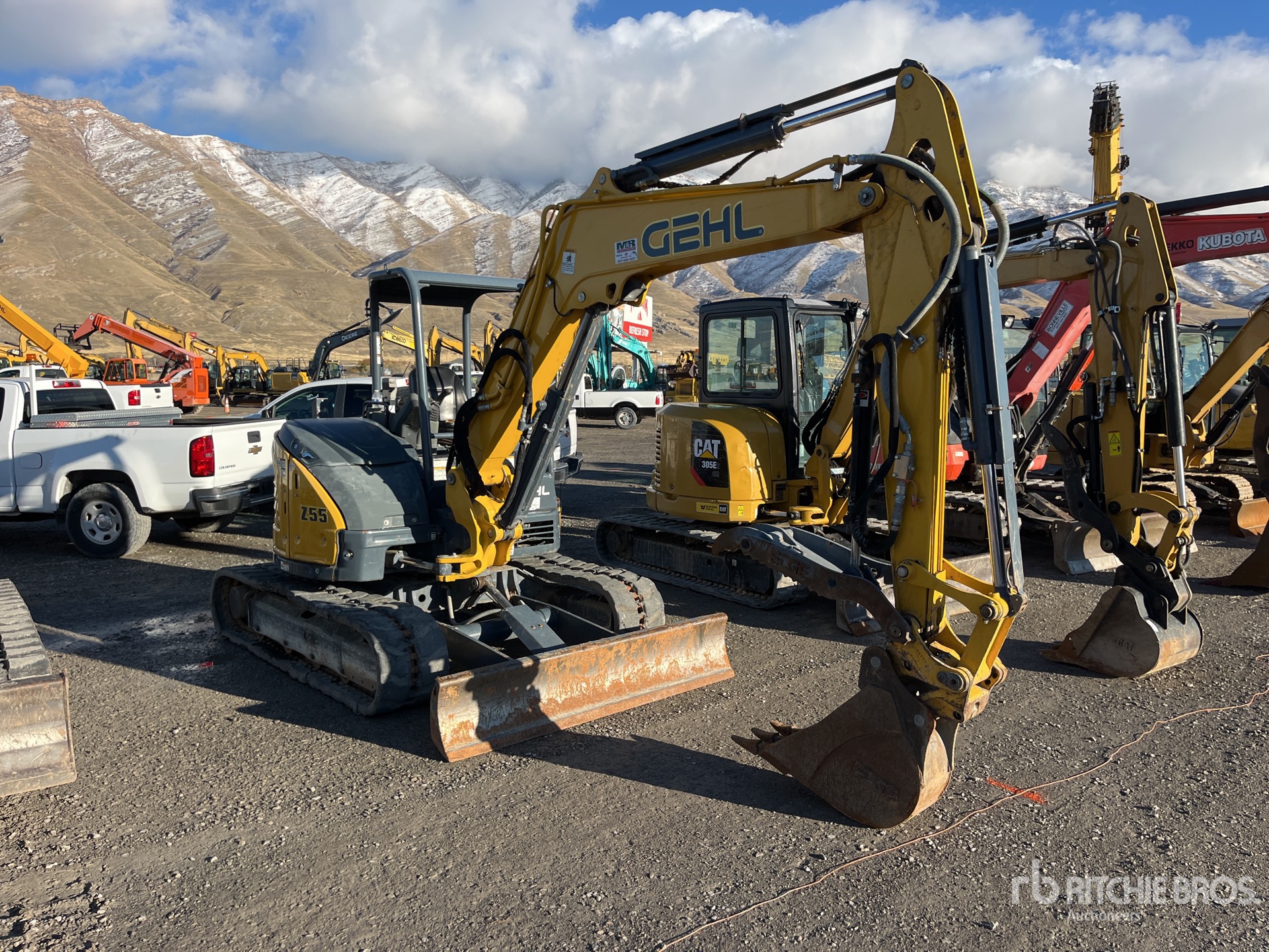 2017 US EPA Label, 5 ft 6 in Stick, Auxiliary Hydraulic Plumbing, Backfill Blade, 16 in Rubber Tracks, Manual Quick Coupler, 11 in Digging Bucket, Hydraulic Thumb