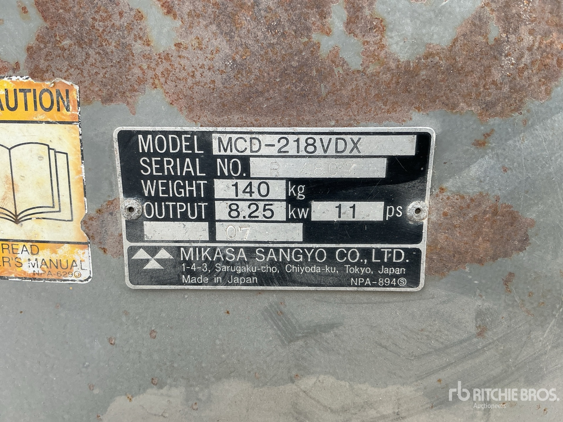 The detailed equipment information is limited in scope, and Ritchie Bros. Auctioneers has not inspected any aspects or components of the equipment other than those expressly set forth herein. Unless expressly stated, we make no representations or warranties, express or implied, concerning the equipment or its components, including without limitation any representations or warranties concerning functionality, conformity or compliance with any safety standard or requirement of any applicable authority or regulatory body, fitness for any particular purpose, or merchantability. You are strongly advised to perform your own detailed inspection of the equipment prior to bidding.