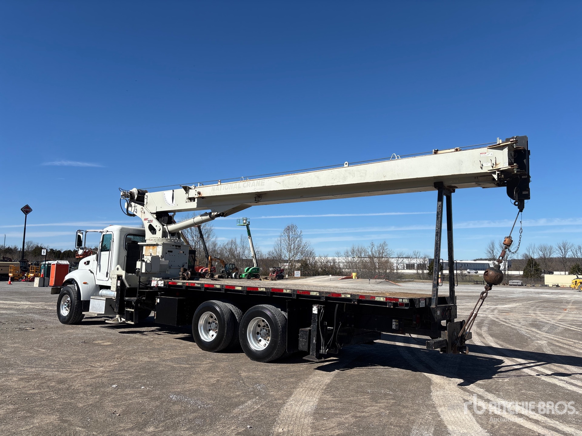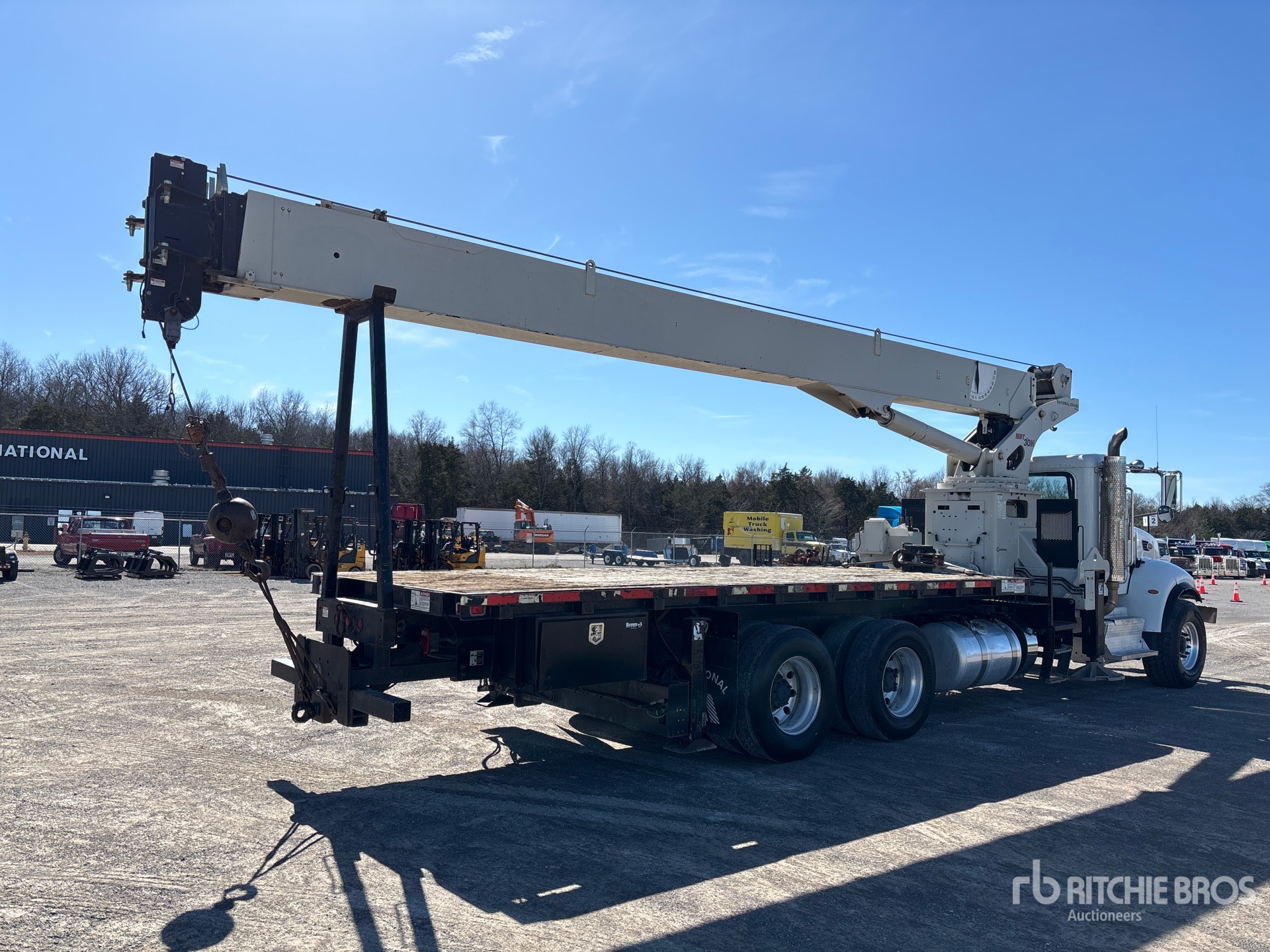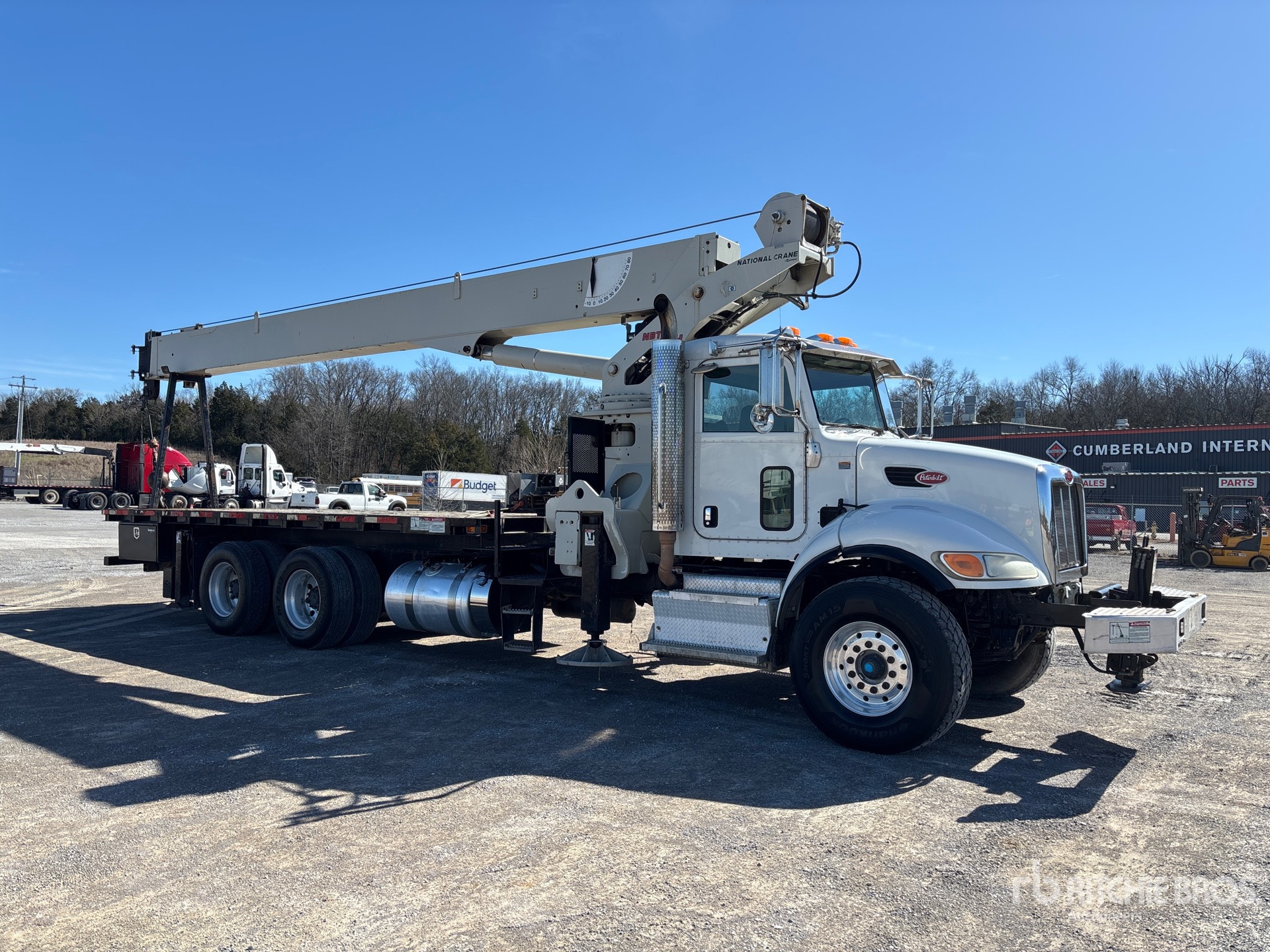 Paccar 8.3 L Engine, Engine Brake, Eaton Fuller 8LL Transmission, Double Differential Locks, 20000 lb Front Axle, 40000 lb Rears, Aluminum Wheels, 425/65R22.5 Front Tires, 11R22.5 Rear Tires, Double Frame, Hendrickson Suspension, 110 ft 4 Section Boom, 44 ft Jib, 150 lb Ovrehaul Ball 1 Sheave Hook Block, Out and Down Outriggers, 5th Outrigger, 33 ft Bed, Pintle Hitch