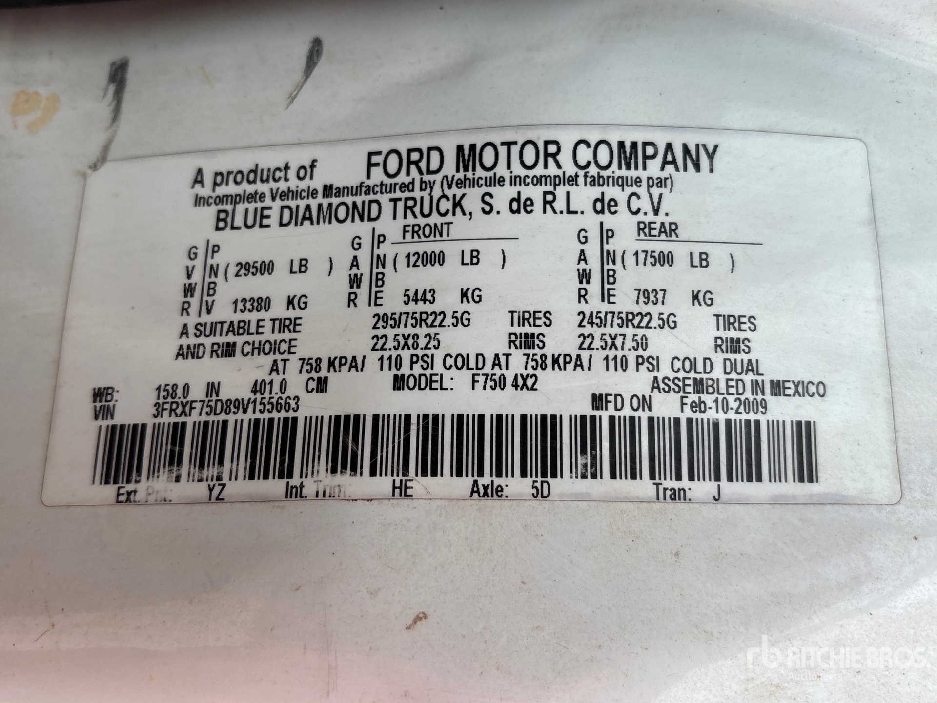 The detailed equipment information is limited in scope, and Ritchie Bros. Auctioneers has not inspected any aspects or components of the equipment other than those expressly set forth herein. Unless expressly stated, we make no representations or warranties, express or implied, concerning the equipment or its components, including without limitation any representations or warranties concerning functionality, conformity or compliance with any safety standard or requirement of any applicable authority or regulatory body, fitness for any particular purpose, or merchantability. You are strongly advised to perform your own detailed inspection of the equipment prior to bidding.