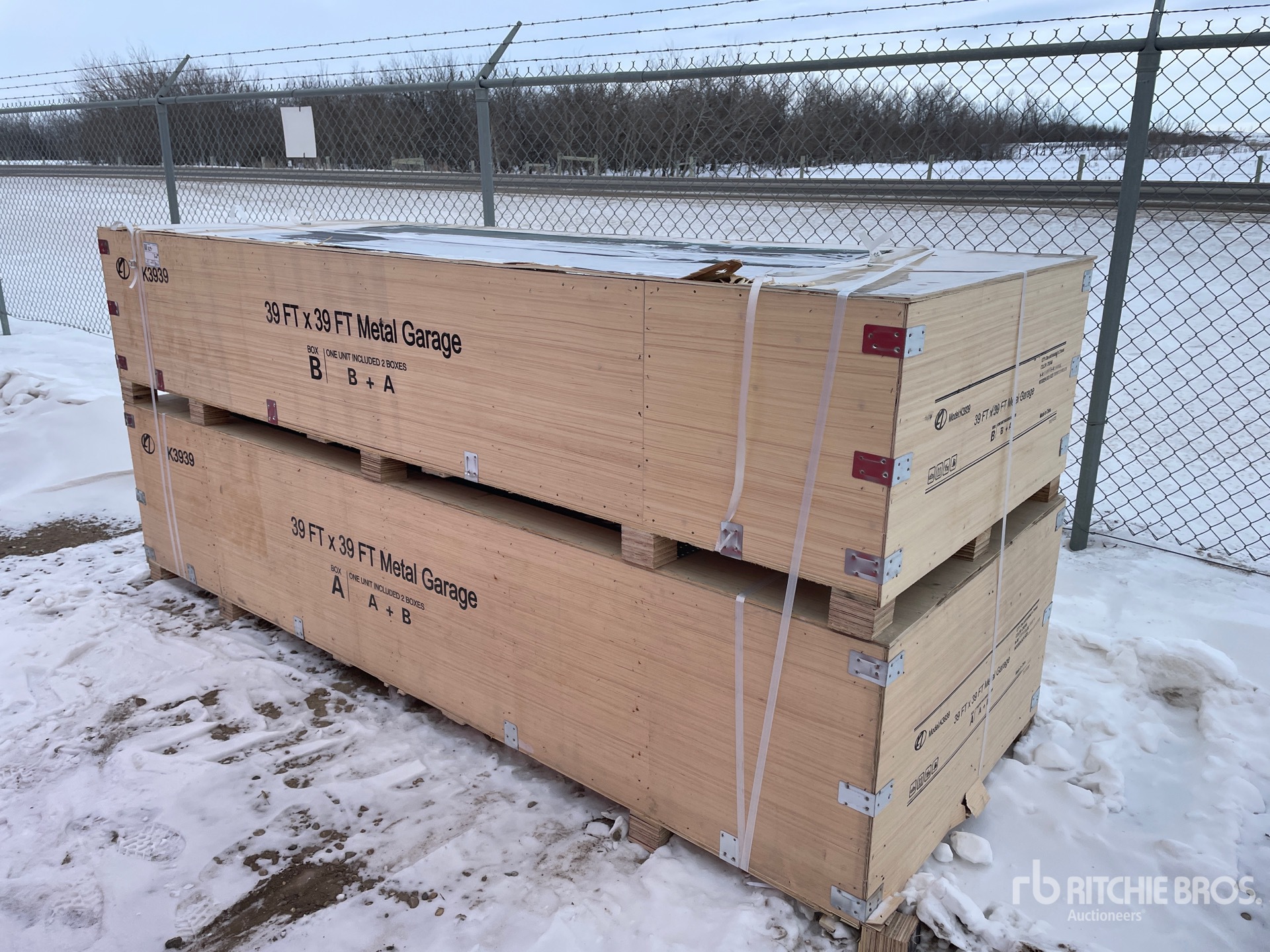 Quantity of (2) Boxes of 2026 KJ K3939 39 ft x 39 ft Double Garage Metal Shed (Unused)