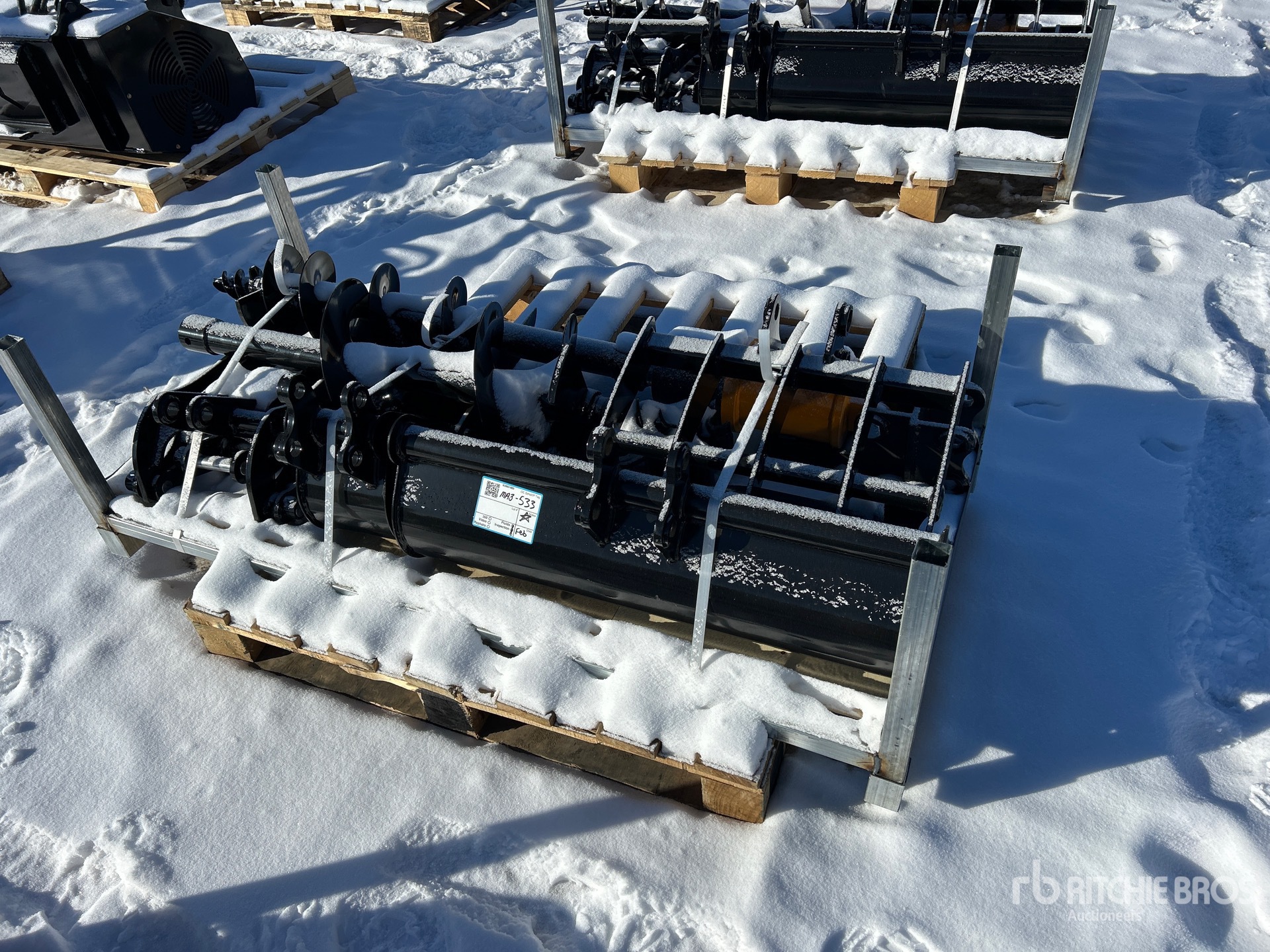 (1) Rake, (1) Ripper, (1) Grapple, (1) Auger w/ 12 in & 16 in Auger Bits, (1) 8 in Narrow Bucket, (1) 24 in Bucket, (1) 32 in Bucket