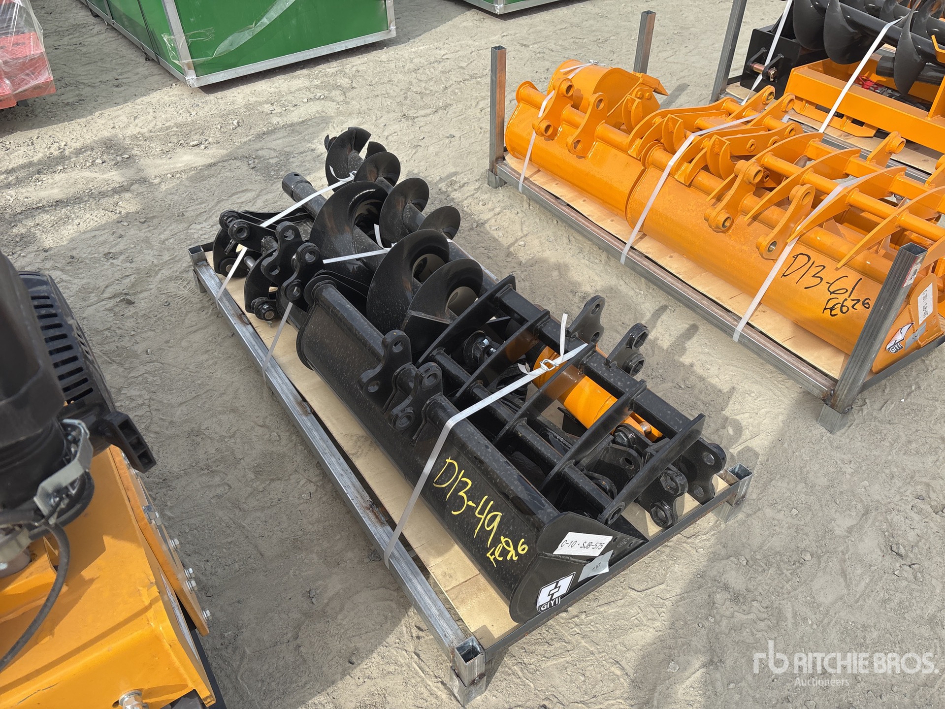 (1) Rake, (1) Ripper, (1) Grapple, (1) Auger w/ 12 in & 16 in Auger Bits, (1) 8 in Narrow Bucket, (1) 24 in Bucket, (1) 32 in Bucket
