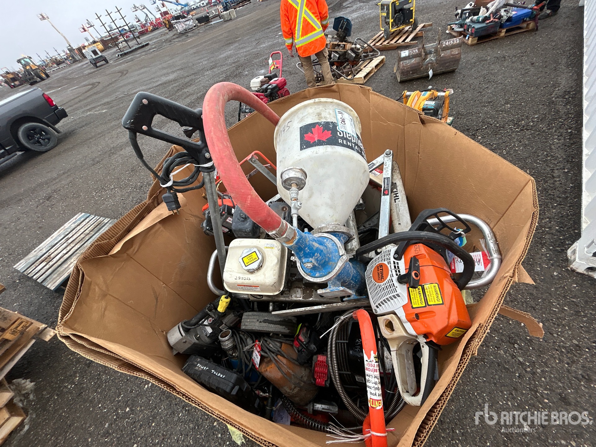 Concrete pump, pressure washer, gutter cleaner, pumps, saws, fan, other