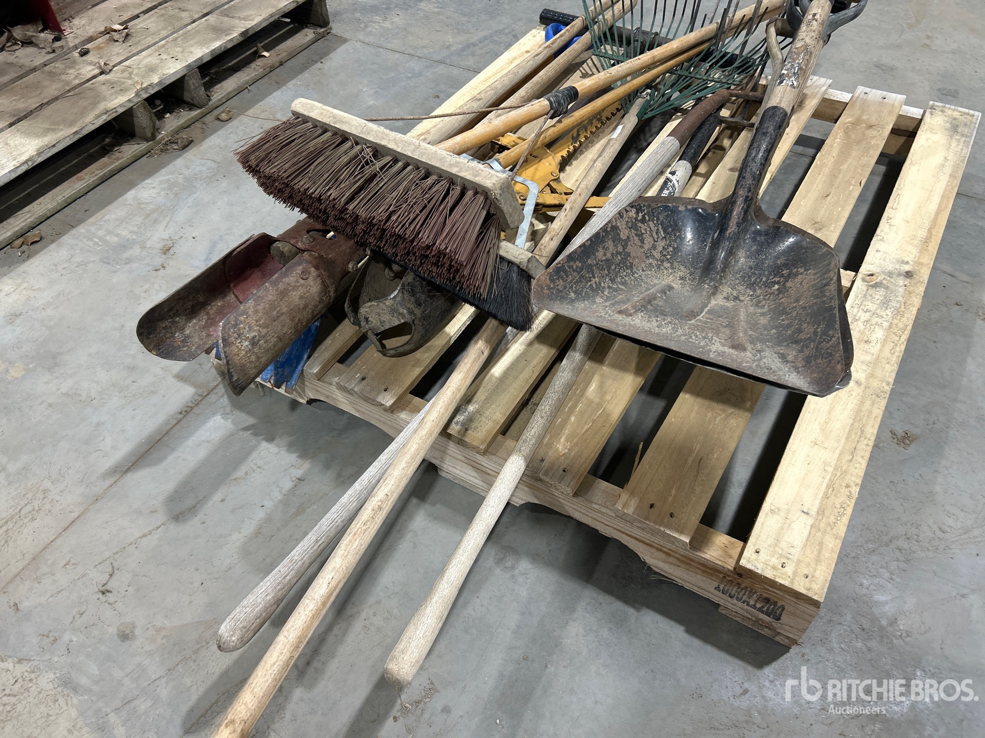 Quantity of Shovel, Floor Brush, Rake & Weed Extractor