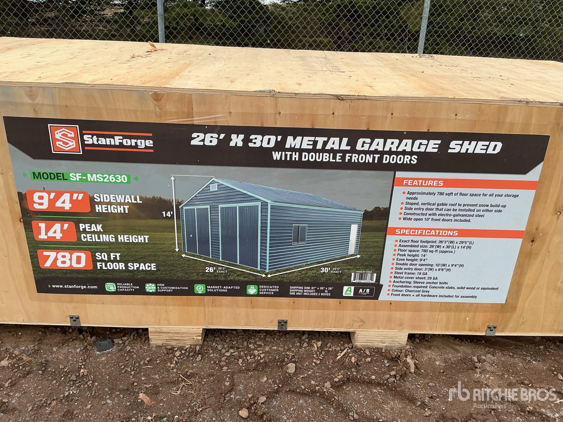 StanForge MS2630 26 ft x 30 ft Metal Garage Shed (Unused)