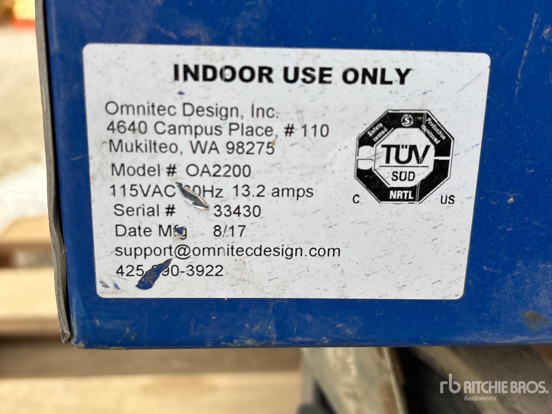 The detailed equipment information is limited in scope, and Ritchie Bros. Auctioneers has not inspected any aspects or components of the equipment other than those expressly set forth herein. Unless expressly stated, we make no representations or warranties, express or implied, concerning the equipment or its components, including without limitation any representations or warranties concerning functionality, conformity or compliance with any safety standard or requirement of any applicable authority or regulatory body, fitness for any particular purpose, or merchantability. You are strongly advised to perform your own detailed inspection of the equipment prior to bidding.