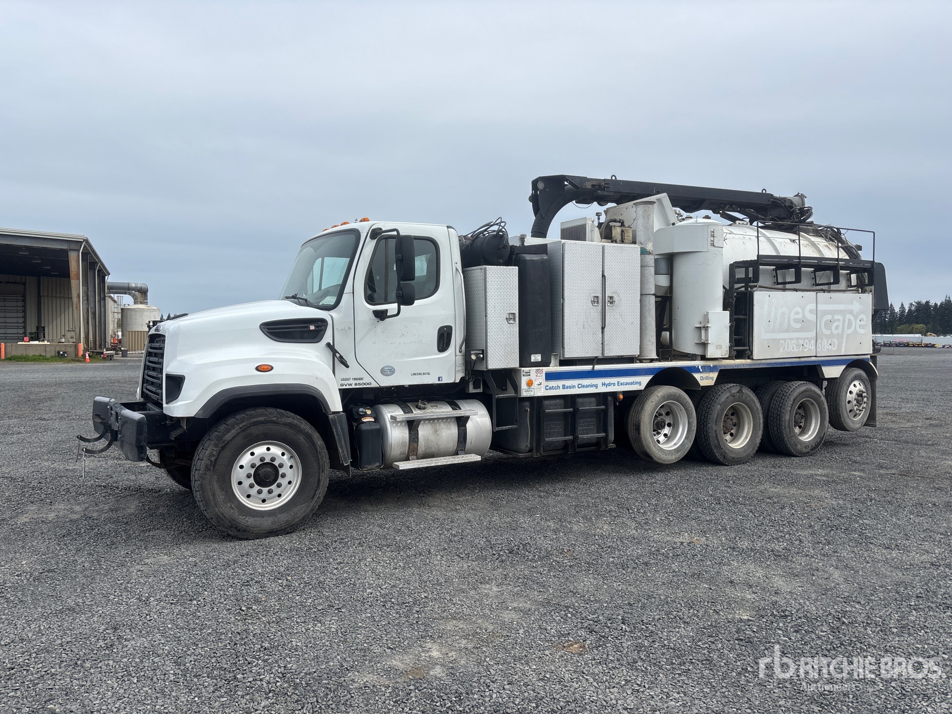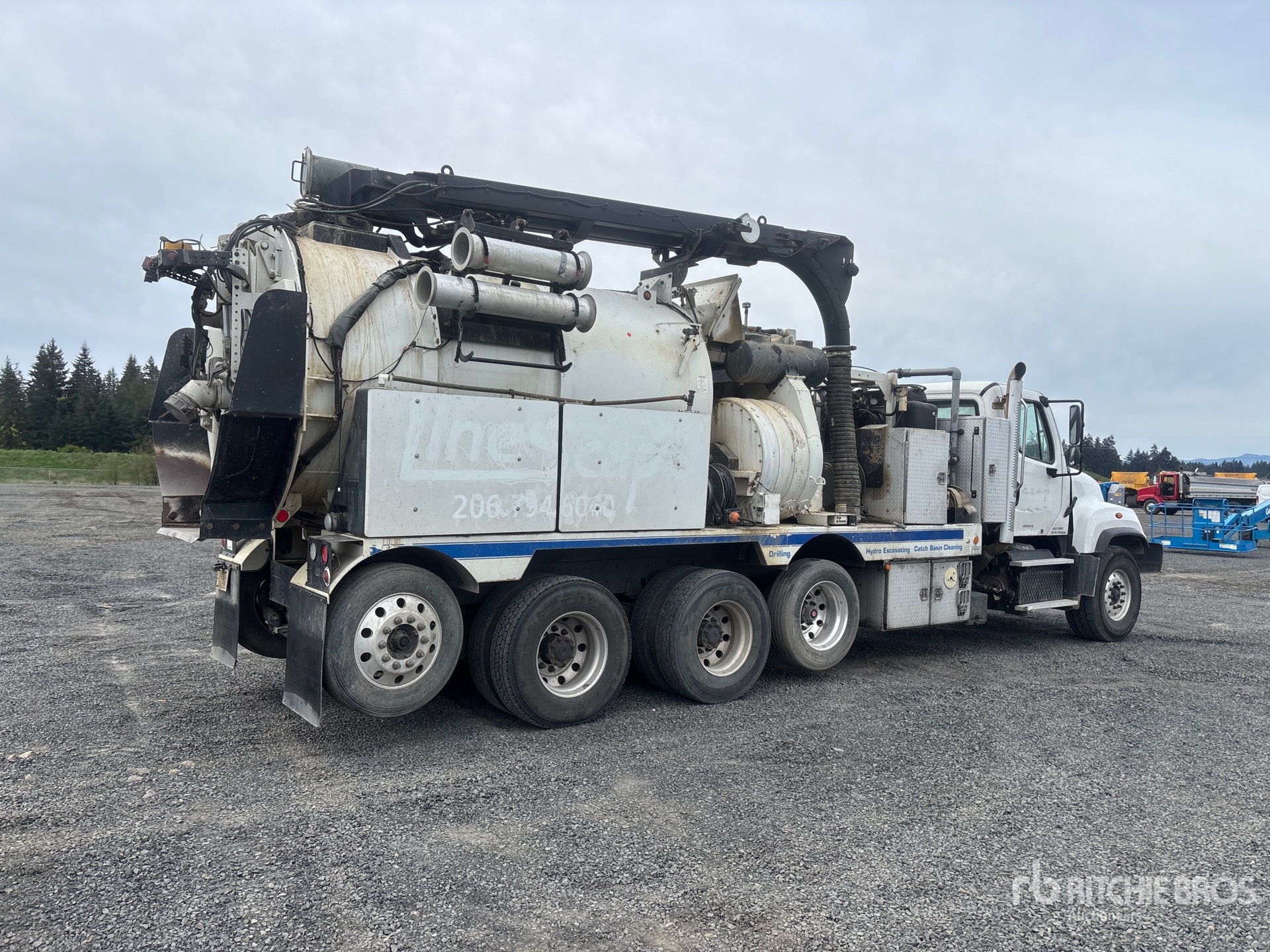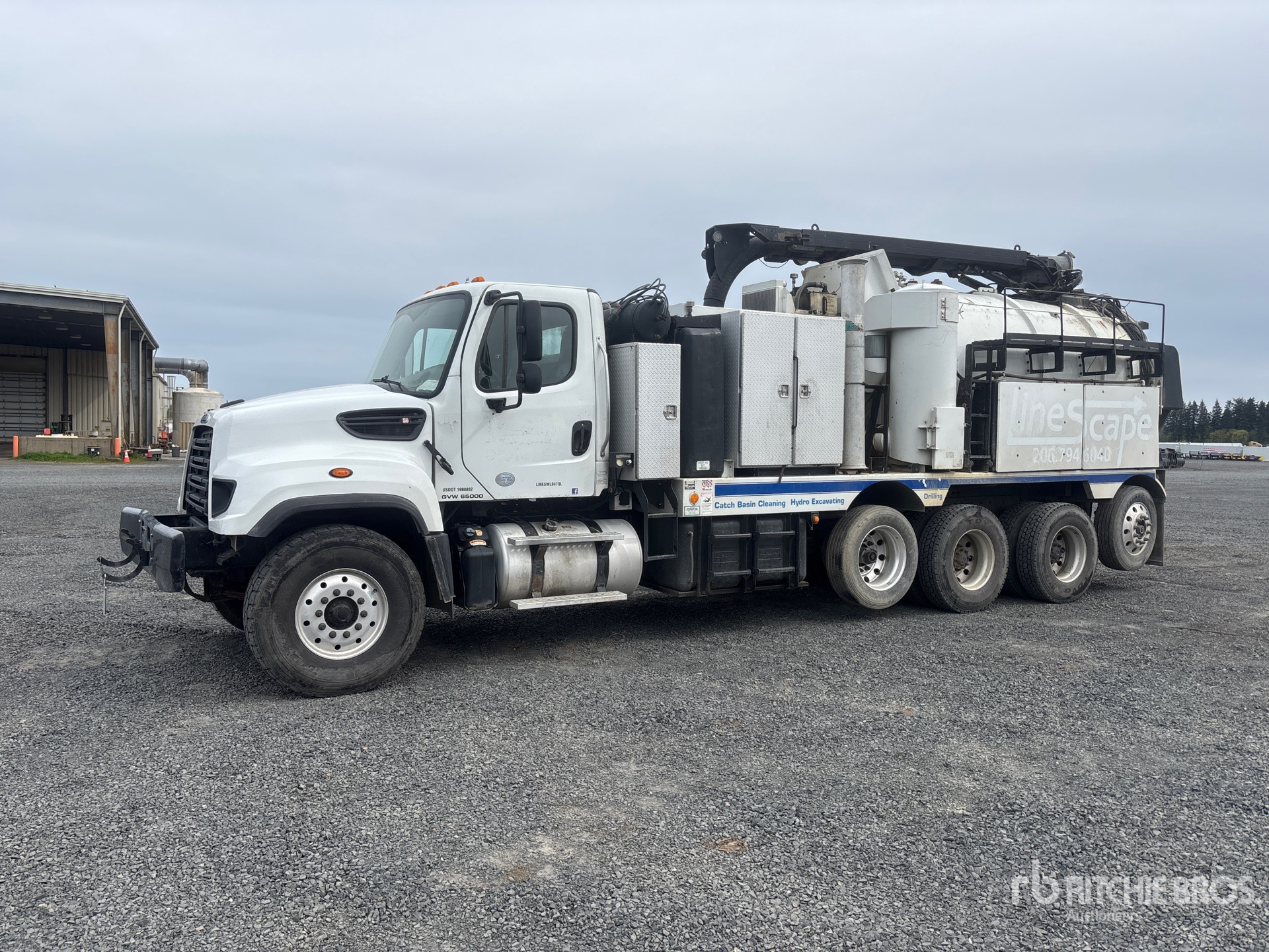 Located in Lane 11 Spot 29, Detroit DD13 6 Cylinder 12.8 cid Diesel 450 hp Engine, Requires Diesel Exhaust Fluid, 13184 Engine hrs, Engine Brake, Eaton Fuller FRO-15210C 10-Speed Manual Transmission, 20000 lb Front Axle, 46000 lb Rears, 4.56:1 Axle Ratio, 66000 lb GVWR, Air Ride Cab, Aluminum Wheels, 425/65R22.5 Front Tires, 11R22.5 Rear Tires, Air Lift Pusher Axle, Steerable Air Lift Tag Axle, Double Frame, Hendrickson Spring over Walking Beam Suspension, 264 in Wheelbase, Steel Debris Tank, Fresh Water Tank, Hydraulic Lift Tailgate, Hydraulic Tailgate Locks, 13 ft Boom, 8 in Suction Hose, Hydraulic Driven Pump, Blower